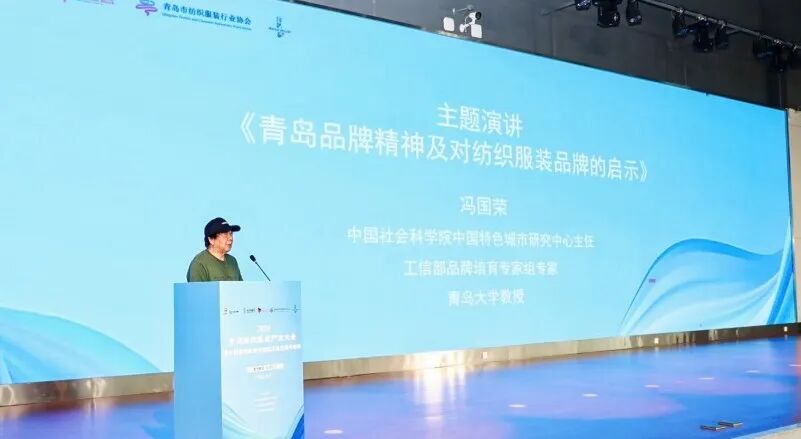 大会邀请到了中国社会科学院中国特色城市研究中心主任、工信部品牌培育专家组专家冯国荣教授为大会作主题分享《青岛品牌精神及对纺织服装品牌的启示》,重点分享了青岛建设品牌之都至今在推动品牌城市建设和重点品牌打造方面的一些历史事件和对经验的总结。
