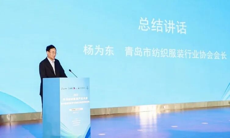 青岛市纺织服装行业协会会长杨为东在会员大会部分作总结讲话,他呼吁行业同仁要在以夯实产业基础,增强创新发展引擎;坚持守正创新,打造未来发展高地;集聚整合优势,实现高效联动;强化文化引领,打造时尚品牌;厚植家国情怀,积极担当责任;集聚综合优势,做好“十新九合”文章等六个方面持续发力,立新求变,推动企业升级发展。