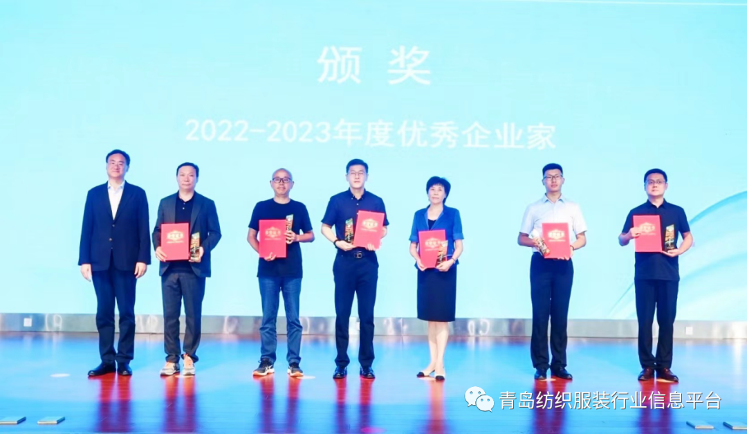 青岛纺织服装产业大会自首届筹办起,就面向会员单位征集优秀企业家与基层一线员工先进事迹,并制定相关申报办法,鼓励企业申报,协会将在产业大会期间进行统一表彰。2022-2023年度经企业申报并经专家组评审共有江卫强、王显其、吕伟、李鹏、汪跃明、于海等六位同志荣誉“优秀企业家”称号;曾鹏、冯志伟、黄娜、黄泽坤、李坤强、李莉、刘秀琳、马永莹、吴大伟、徐洪江、于红梅、栾兆娥、左文正等十三位同志获“基层先锋奖”称号。