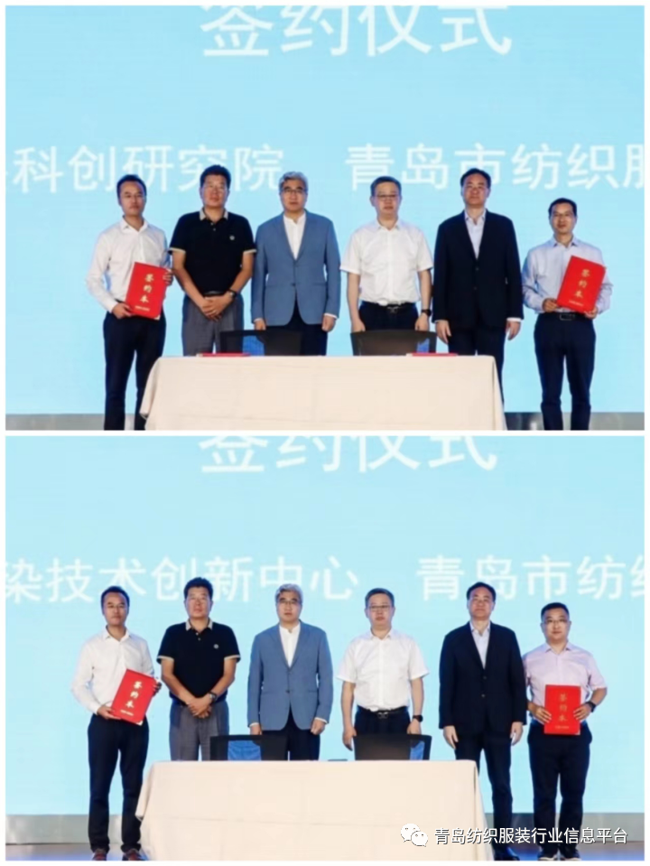大会期间,青岛市纺织服装行业协会还分别与中国服装科创研究院和国家先进印染创新中心进行战略签约。三方将共同为青岛产业数智化发展与促进印染产业提档升级发展提供服务保障和研究支持。