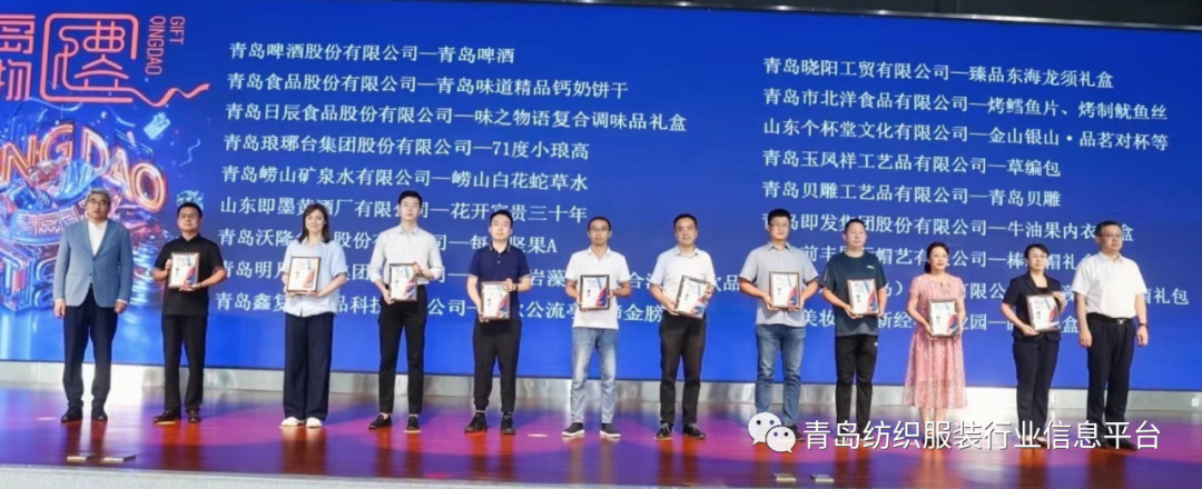 大会还正式发布了由青岛市食品工业协会、青岛市工艺美术协会、青岛市纺织服装行业协会、青岛市商业联合会共同发起的“青岛礼物”首批产品名录,并现场进行授牌。纺织服装服饰类产品有即发集团牛油果内衣礼盒、前丰帽艺“DOODAYS”礼盒、恒尼家居服礼盒、平度美妆礼盒四款产品正式入围。
