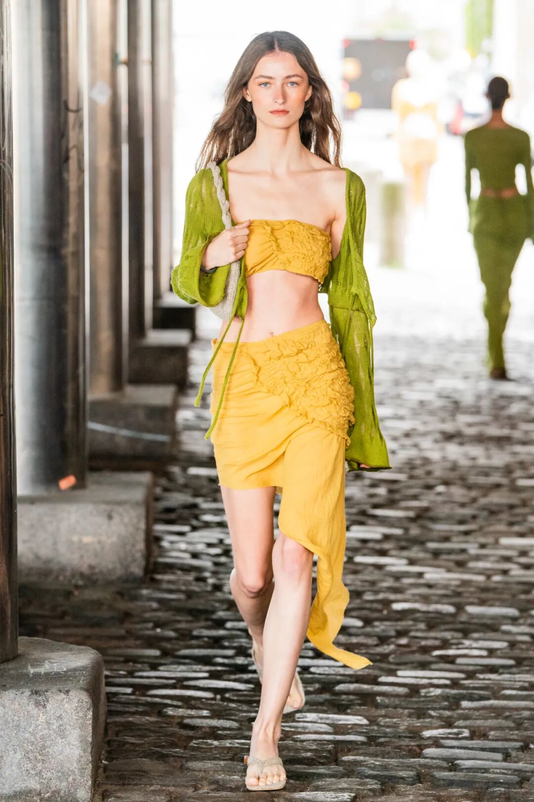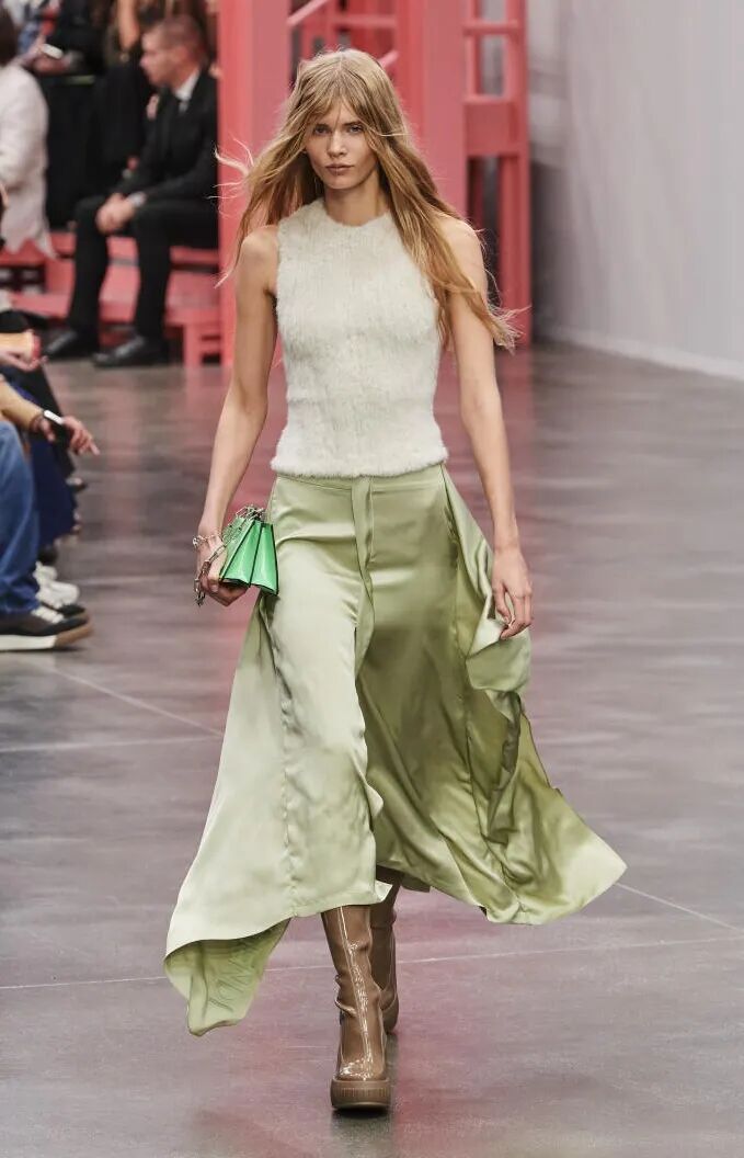呼应当下消费者对亲近自然的渴望和不断增长的户外时光趋势,该色彩可以为系列基本款带来柔软治愈之感,体现与自然的亲密连接。同样适用于着重疗愈氛围的室内设计空间中,或是运用于家纺和卫浴的配色方案里营造惬意居家体验。美妆市场可以尝试将该色彩融入彩妆调色板,或作为护肤品和沐浴产品的前卫色调。受乐观个性主题的持续影响,冬日亮色随之走红,这组色盘具有浓郁的秋日氛围,充满活力的多巴胺色调起到提振情绪的作用。利用日晷黄、灯塔橙和优雅深红等色彩营造融融暖意氛围,醒目撞色、条纹、渐变等设计手法为单品带来更新,植物元素作为装饰和印花,与月桂叶的自然属性相融合,中和了浓郁暖色系所带来的强烈视觉体验,提升该色盘的日常实用属性。消费者对持久耐用色彩的追求,使得冥静粉蜡色调成为新的趋势,浅淡的粉彩色适用于打造柔美女性风格,自然绿色调及质朴中性色的搭配迎合了消费者对舒适疗愈的追求。本主题配色具有强烈的跨季风格,男女皆宜。建议将月桂叶、燕麦奶色、白垩色等长期色彩作为底色,并将意式奶冻色融入其中,为色板增添一抹亮色。适用于现代风格简约廓形,打造商业化时尚风格的衬衫及针织类服装,粘土粉和珍珠灰与叶桂月的搭配也可打造出甜美女性风格。该色调灵感来源于2023/24秋冬趋势预测孪生主题中的混沌沼泽,大自然继续以各种形式激发灵感,更加粗犷、阴暗的设计理念呈现在我们眼前。同时也展现了环境危机和动荡环境下消费者暗黑复杂的情绪。午夜蓝、黑色、浓郁锈色奠定该色盘暗黑的情绪基调,绿色与银灰色则碰撞出强烈的视觉效果迎合前卫风潮。适用于打造休闲户外装扮和年轻必备款式。自然沼泽启发迷彩、斑纹和失真染色灵感,建议选用天然染料突出环保主题。高屋建瓴丨孙瑞哲:开放姿态,包容精神,拥抱世界,服务全球
