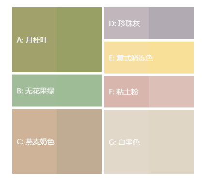 缤纷绿色主题一直在版面中占据着重要位置,月桂叶是一款清新又不失现代感的柔和橄榄绿色,梦幻而浪漫。