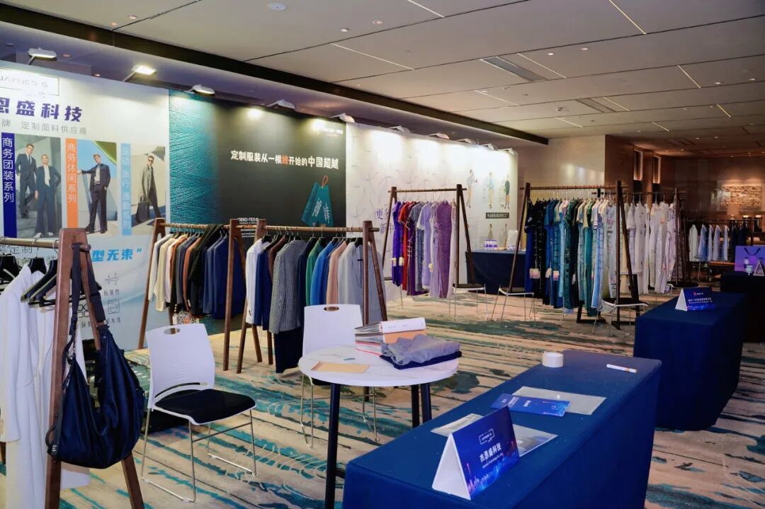 在主会议厅前厅,“定制供应链+定制品牌静态展”贯穿峰会议程始终,湖南派意特服饰有限公司、衣央新商务女装定制局、鲁泰纺织股份有限公司、杰恩盛科技有限公司、普照兰旗袍、嵊州市浩友领带服饰有限公司、温州一可线业科技有限公司、赛趋科软件(上海)有限公司、中山市舜禹服装科技有限公司9家优质企业,涵盖了定制品牌、私人定制、定制工厂、职业装、定制面辅料、平台型企业等领域,全方位展示了定制行业的实力和水平。