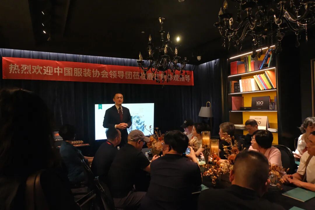 9月9日上午,与会嘉宾共同走访了大汉工匠湘绣与服饰学院、湖南派意特服饰集团、鹿定制等湖南省柔性定制生产企业和著名定制品牌。通过对大汉工匠湘绣与服饰学院的实地考察与交流,嘉宾们感受了中国非物质文化遗产湘绣的独特魅力以及湘绣技艺与服饰的结合运用展示,嘉宾们对大汉国际深化校企合作、推进产教融合、举办工匠精神课程等项目表示高度认可。据介绍,湘绣与服饰学院总建筑面积6256㎡,可同时容纳1000人开展教学活动。学院以织、染、绣、缝四大类工艺为主线进行整个场馆的规划与建设,并设有汉服馆、校服馆、时尚商务装馆、蓝染教室、湘绣教室、织布教室等六个集科普与体验为一体的主题馆。作为成立于1993年的现代化服装企业,湖南派意特服饰集团凝三十年制衣功力,应用数字化、智能化、大数据技术,建成亿级版型大数据库,以精湛的工艺品质、优秀的柔性定制生产能力和良好的口碑,成为全国近300家定制品牌的定制生产供应链。嘉宾们先后参访了派意特服装数智技术研究院、工艺技术研发中心,对派意特产教融合实训基地对服装定制行业人才培养的贡献表示赞赏。董事长姜学军强调,人才是第一生产力,希望通过培养更多技能型人才,能一解服装企业用人慌的困境。