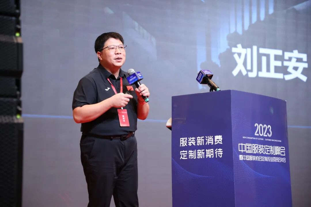中国服装科创研究院副院长刘正安在《服装定制企业的数字化转型趋势》的分享中介绍了中国服装科创研究院的诞生和发展,他指出,随着科技的日益发展,服装定制的数字化转型已势不可挡,作为中国服装协会隶属单位,中国服装科创研究院将以服装全流程场景实验室、5G未来工厂实验室等为支撑,为服装定制企业数字化转型升级和实现智能制造发展提供助力。