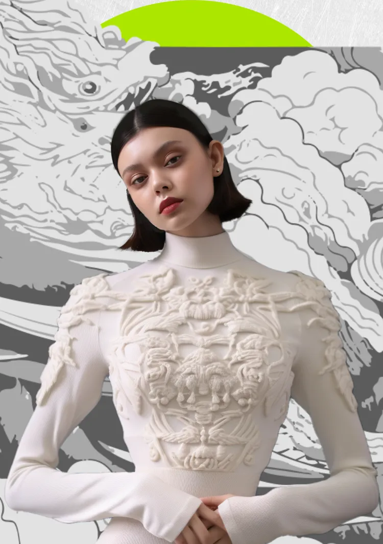 比如,本季时装周联动“中国绸都”江苏盛泽、“皮草之都”浙江海宁、“中国布艺名镇”浙江海宁许村、非遗香云纱产地广东南沙榄核、“中国羊绒服名城”陕西榆林、“冲锋衣之都”浙江三门、河北廊坊“云裳小镇”等重要产业集群地,展示与“金顶奖”设计师、中国最佳/十佳时装设计师、新锐设计师、年轻设计人才等跨界合作成果,以秀为媒、以提升设计生产力为核心,加强产业与时尚设计的嵌合,为行业打造设计创新链、面料供应链深度共创的范本,强化设计自信、品牌自信与行业自信,引领产业结构全方位升级焕新。前进/黑牡丹/致兴/如意/天虹/赛得利联合推出中国牛仔面料流行趋势发布,盛泽织造携手天缘发布中国可持续锦纶时装流行趋势,恒信/天唯/欧梦尼亚联合发布中国轻奢女装流行趋势,新生SUNTEX中国时尚女装流行趋势发布等,推动设计师和原创品牌从上游端进行融合创新,合力展示产业链协同发展的强大效能,带动整个时尚产业生态的高质量发展。2023年时尚行业迎来全面复苏,以Z世代为代表的新一代主力消费者个性化、差异化的消费诉求更加强烈。作为中国国际时装周首发、首秀、首展内容的官方配套商贸展会,2024春夏DHUB设计汇以“智能·绿动”为主题,携手海内外先锋时装力量,特别呈现多个重磅活动。