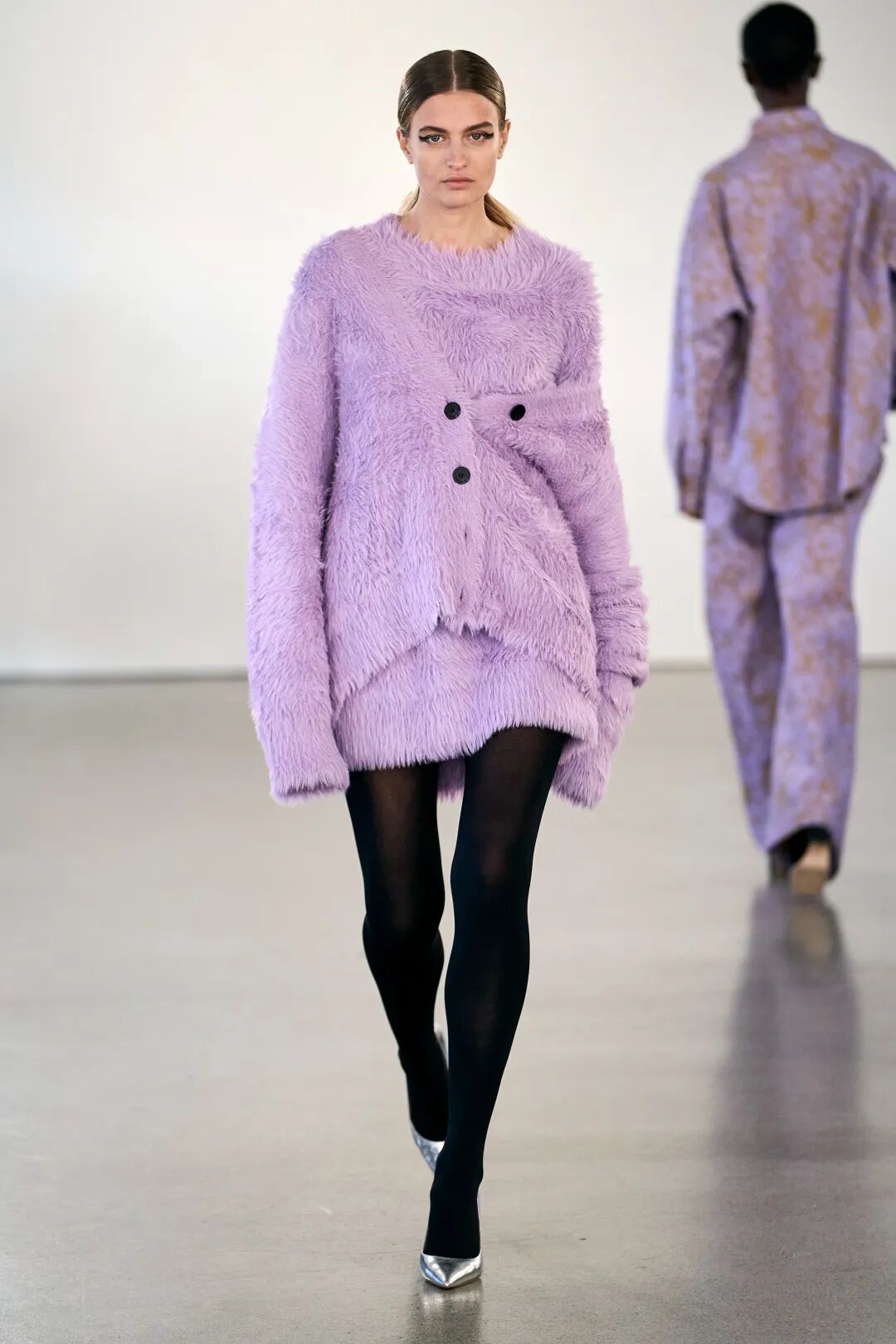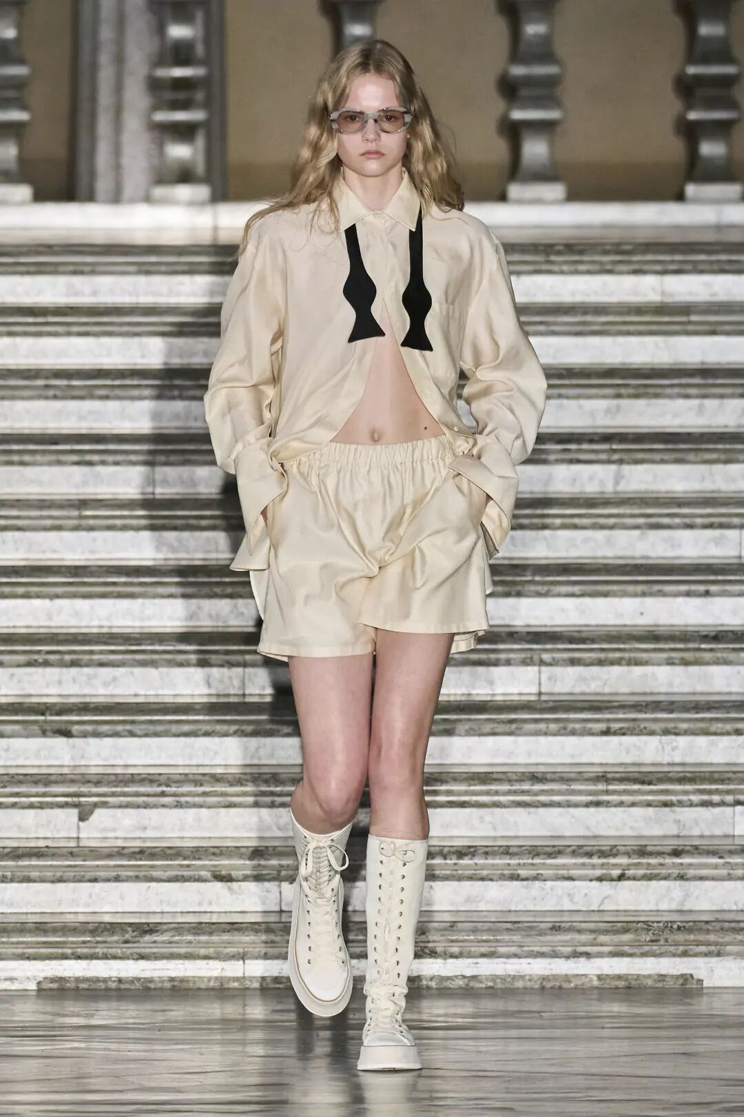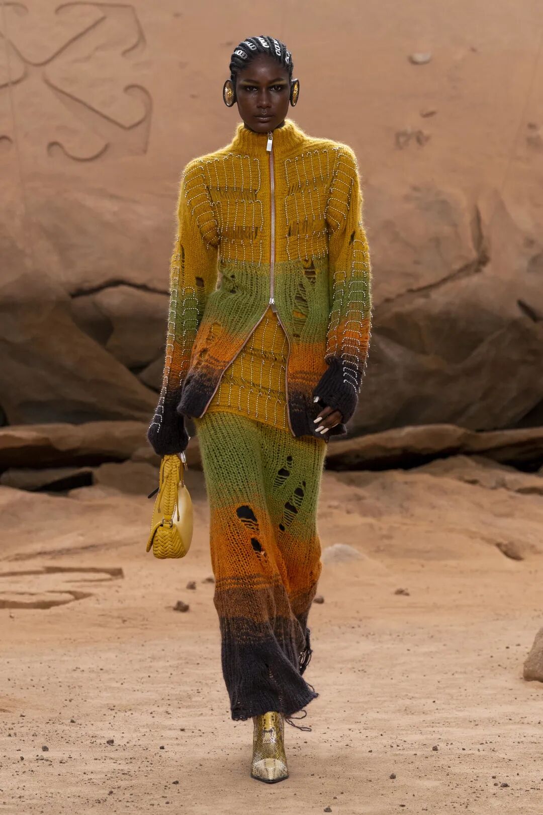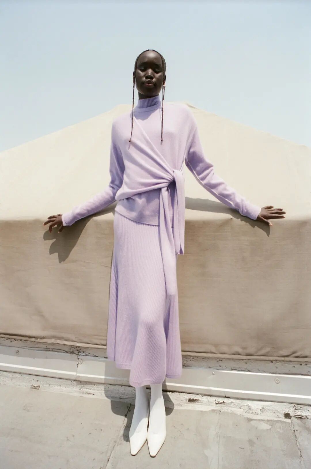2024度假系列的家居服套装继续向盛装、外出活动的方向发展。光泽柔和的丝质材料具有柔软流动性,与闺房装扮主题相得益彰。精细镂空针织和纹理材质轻巧便携,适合舒适度假造型。罩衫套装是保守和青睐百搭上衣连衣裙二合一的消费者的理想之选。