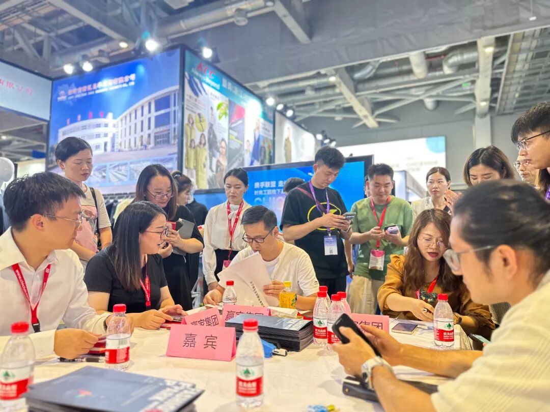 为进一步展示中国服装优质制造商“国家队”的整体实力与形象,推进联盟会员企业与优秀品牌的商贸对接,开拓服装新市场,中国服装优质制造商联盟共带领15位“制造英雄”组团走进CHIC2023(秋季)展,包括国泰华盛、藏贝羊绒、新力高、新德集团、中科海势、赛晖科技、清扬时装、新亚服装、润泽华、仔衣库、茄时力、垦青拉链、昌华服饰、闰博尔及盈艺纺织,全面展示羊绒大衣、羽绒服、外套、卫衣、T恤、毛衫、连衣裙、牛仔、面料等各种匠心产品,集中打造中国服装优质制造“国家队”新优势。开展伊始,会场就迎来CHIC主办方的现场直播,参展企业代表向主持人以及现场观众详细介绍了企业和展位上产品的设计研发、面料选择、工艺制造等各项流程,希望观众和来往客商更好的了解和关注。会场内来往客商比肩接踵,前来咨询洽谈的客户更是络绎不绝。展位上人气更是不断上涨,企业抓住每一次交流机会,向前来参观的专业观众和品牌详细介绍新产品,引导客户感触面料、观摩设计、鉴赏工艺。本次对接会以品牌为“分割线”,持续进行了长达一天半的线下对接活动,共吸引了大连隆生、丹东华洋、方圆纽扣、黑牡丹、纳格西斯、欧龙皮革、青岛邦特、星华新材料等在内40多家优质制造及产业链上下游企业。会场内高朋满座,气氛融洽,各品牌商与现场每家供应商都进行了一对一的深度交流和洽谈。本次线下对接会,对接效果精准有效,15家品牌商对本次活动的成效都给予了一致好评,希望联盟后期能继续帮助他们筛选供应商、梳理供应链,期待后期与有意向的供应商进一步沟通合作......制造企业们也纷纷反馈通过本次对接会增加了新客户资源,加固了老客户感情,收获满满,希望后续时尚工园能多多举办这样高效快速的对接活动。