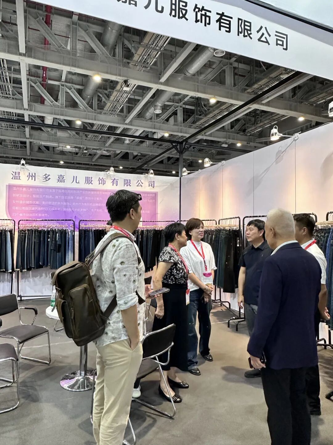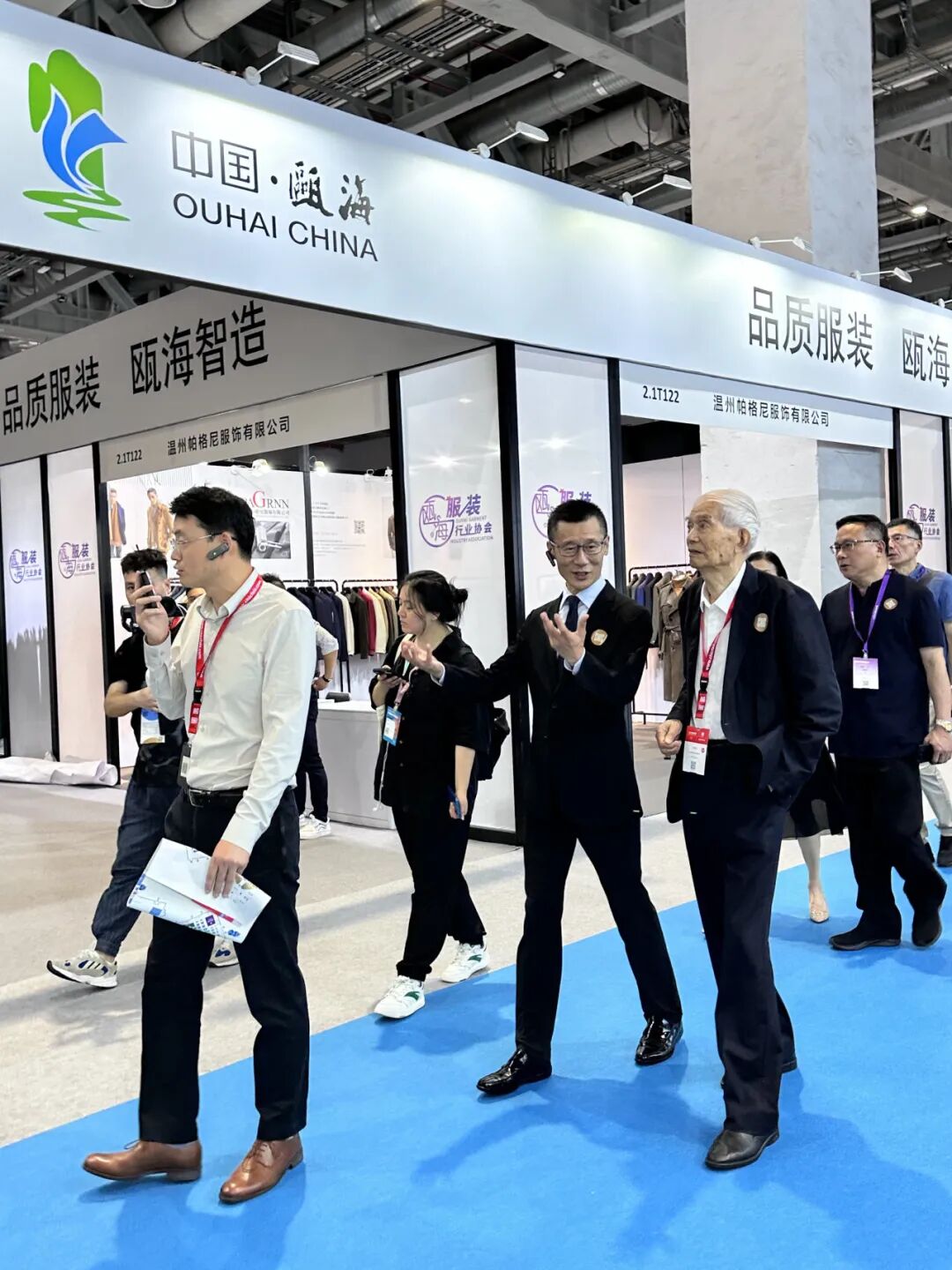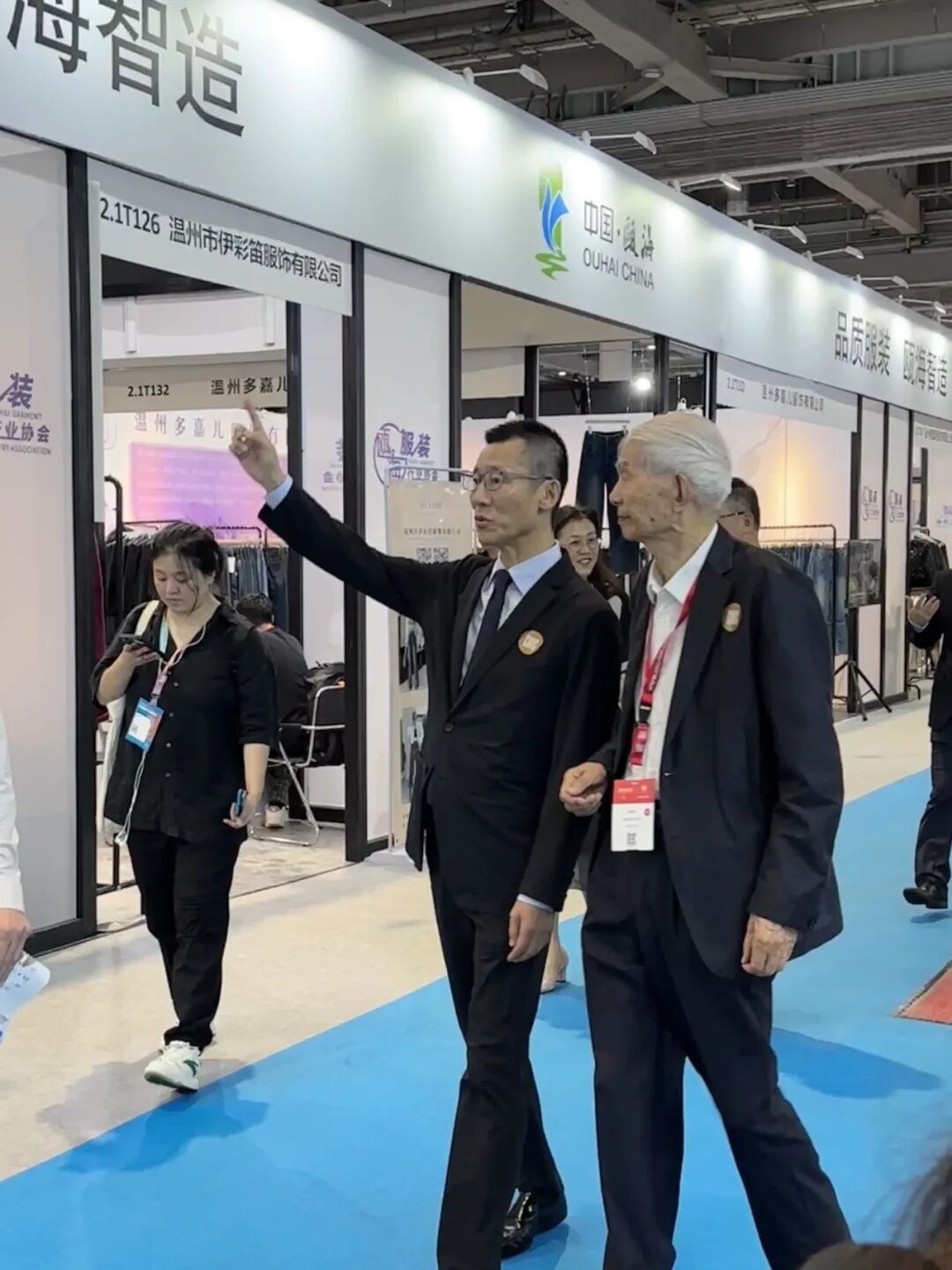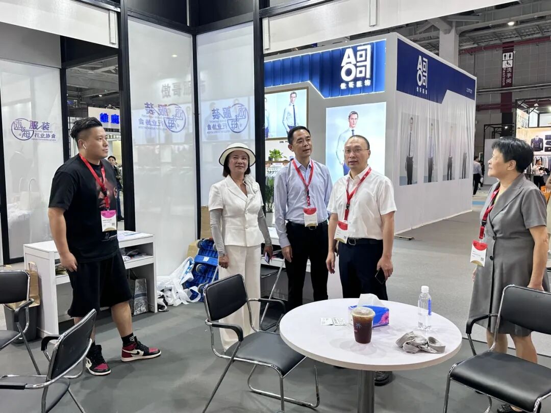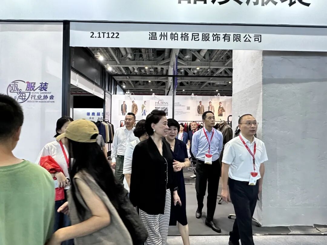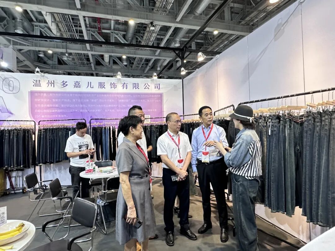 瓯海区副区长杜潘祚在商务局局长谢东陪同下,莅临瓯海展区巡展指导,为企业站台助威,鼓励企业参展信心。现场走访了参展的18家企业,在交谈中了解企业经营走向、订单形势、产品特点等情况,对参展效果给予高度评价。并鼓励瓯海区要依托当前产业优势,专注主业,做强实业,提升瓯海服装品牌竞争力,实现高质量发展。
