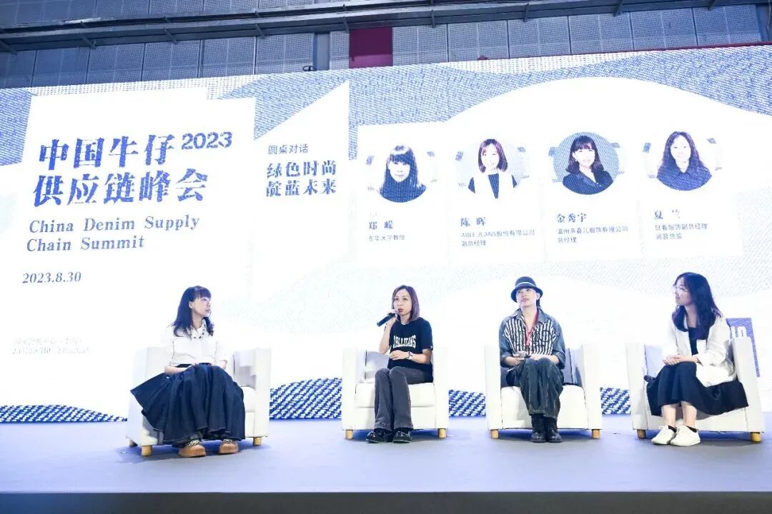 新时代,中国牛仔产业未来充满了机遇,但同时也面临着很多挑战,为了实现高质量发展、科技创新,国际竞争力都成为破局的重要手段……为解决当下问题,响应高质量发展,2023中国牛仔供应链峰会邀请行业领军人物,从各自发展背景分享牛仔产业的经验和模式,一同畅谈中国牛仔供应链的目标和未来。我协会副会长金秀宇代表瓯海展团参加“2023中国牛仔供应链峰会”。在峰会上,她表示多嘉儿服饰是一家专做女装牛仔的生产企业,所以对于设计方面我们会以时尚新潮为导向、市场需求为出发点开发产品,更加接地气。应对快速变化,我们结合了当下较火的“她经济”,对订单也尝试了小单快反,大大提高了效率。同时我们认为提供较为舒适且穿着长久的牛仔满足消费者的情绪价值,也是带动绿色时尚,走可持续发展之路。
