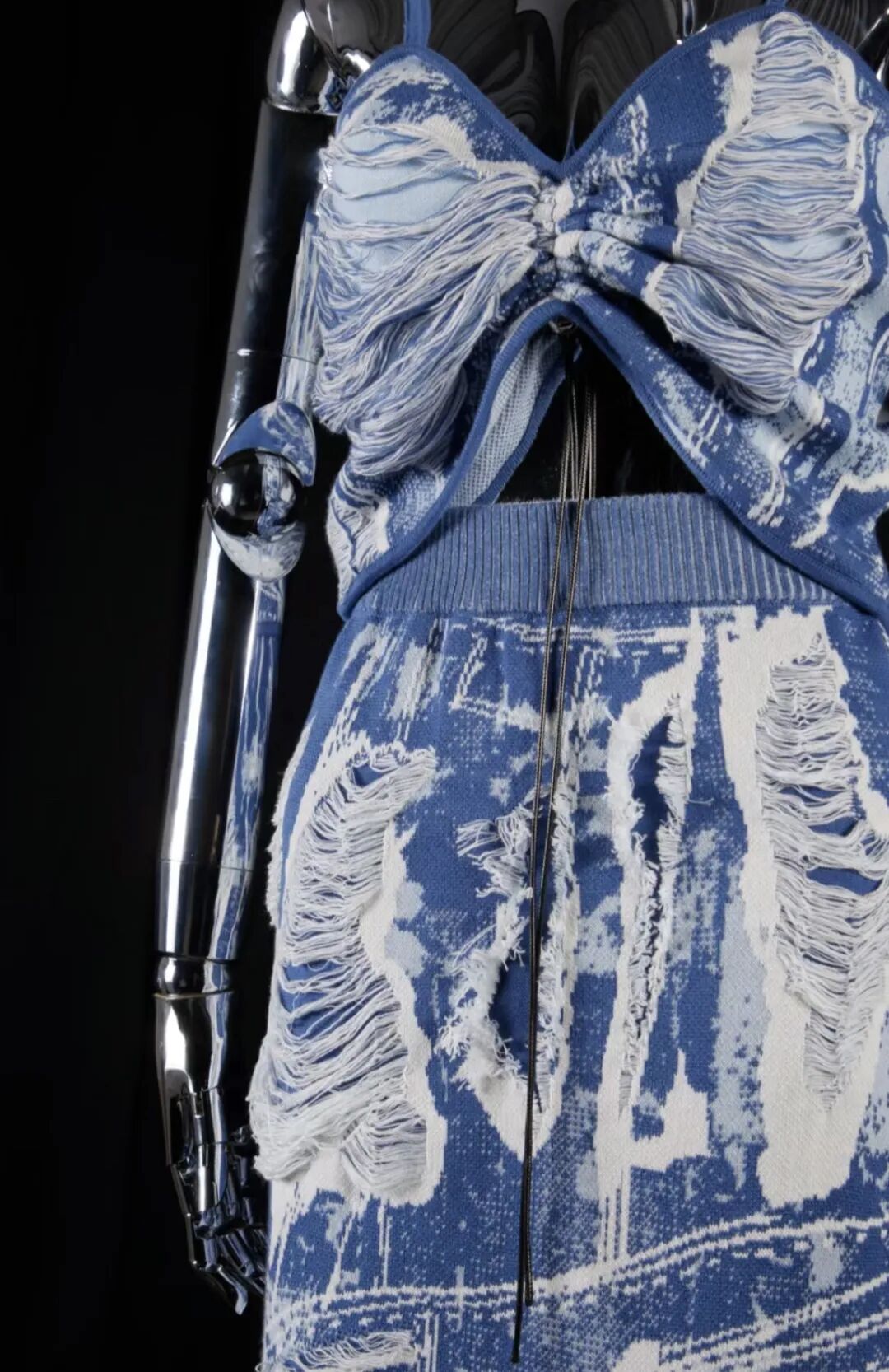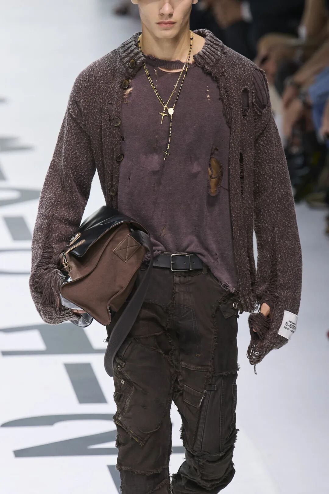 原本属于服装的瑕疵现如今在设计师们的手中已经不再是瑕疵,而是专属于服装的设计亮点。破损做旧、拼接做旧、晕染做旧都是设计师们青睐的做旧设计手法。下面跟随小编来一起看一下做旧设计在毛衫上的精彩表现吧~