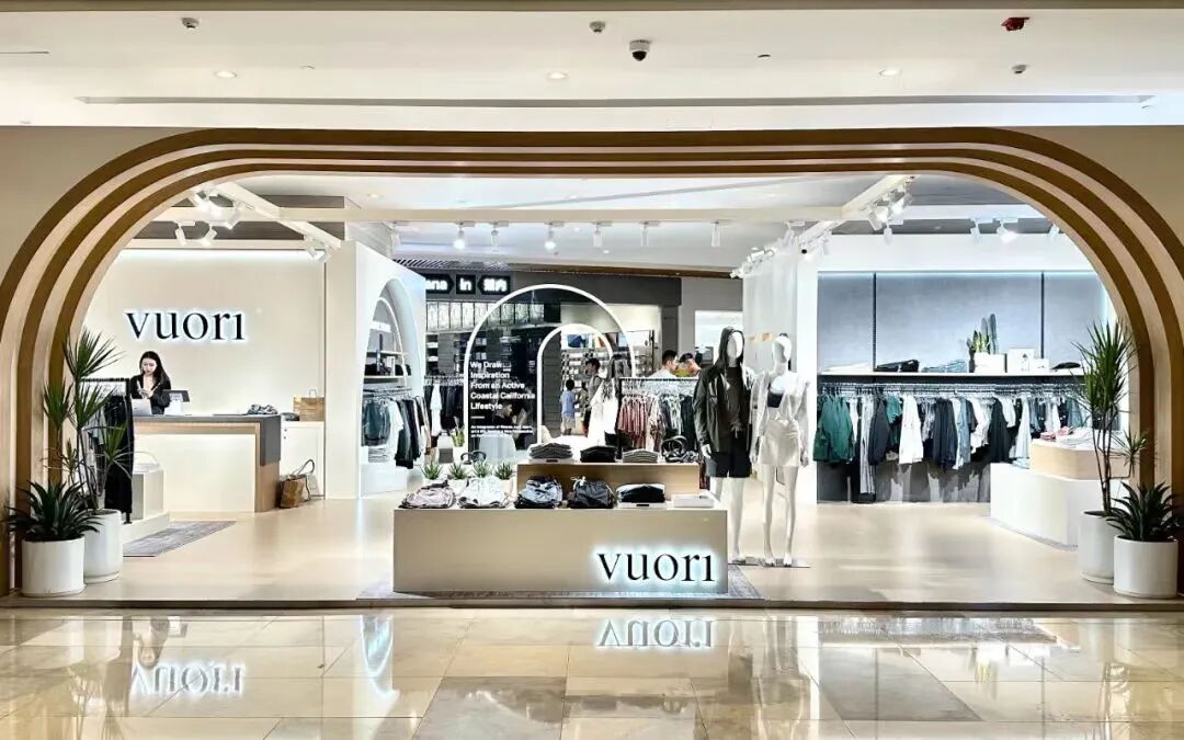 近日,高性能运动装备品牌Vuori的中国首店落地上海静安嘉里中心,同时这也是该品牌的亚洲首店。该门店以明亮简洁的纯色风格为主,墙面标语“The Rise The Shine”与仙人掌元素也体现了加州海岸的自由风情,同时,店内还陈列有哑铃、跳绳、运动水壶等运动装备。