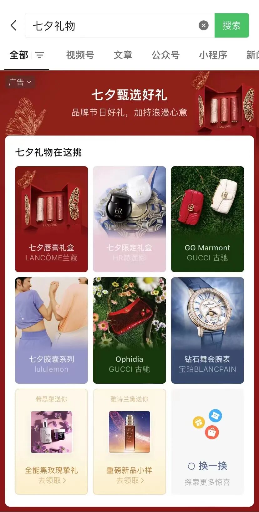 在如此蓬勃的礼赠消费机遇下,七夕让以爱为名的礼赠消费得到进一步释放。无论是 00 后、已婚夫妻、中年伴侣、单身一族,均加入到这波消费热潮中,当仪式感成为情感类节日的必需品,当礼赠成为一种时尚文化,奢侈品牌正在不断借势这一商机,以情感共鸣增强消费者黏性,并实现多重效益。来自 TMI(腾讯营销洞察)的调研数据显示,70% 的受访者在七夕节购物的预算会较平时有所上涨,其中预算为 1000~5000 元的消费者中 52% 选择购买轻奢包(单价 7600 元及以下),5000~10000 元预算的消费者中 36% 选择购买奢侈品(单价 7600 元及以上),表明大部分消费者是奢侈品牌的潜在用户。此外,参与调研的男性中 80% 将送礼物给伴侣,而参与调研的女性中 66% 将送礼物给伴侣,还有 34% 女性将送礼物给自己。社交媒体上奢侈品牌的营销玩法,占据节日营销很大程度的比重。天花乱坠的营销玩法以及铺天盖地的品牌广告似乎烘托了火热的节日氛围,但近几年中消费者的兴奋度也在逐渐减弱,新鲜感也越来越少。在千篇一律、天花乱坠的营销玩法下,难免让消费者感到压抑和窒息,因此,品牌如何通过新颖的创意广告,返璞归真地与消费者进行内容沟通,才是寻找呼吸气口的关键之举。有研究指出,消费者在线上更倾向于“发现式购物”,往往在没有购买目的的时候,在信息流中与营销活动不期而遇,从而产生消费冲动。因此,在越来越随机、感性的消费行为下,品牌通过更好的交互性体验,能够让用户产生更强的联结,从而激发购买转化。基于此,在七夕营销期间,奢侈品牌纷纷使出浑身解数,在各大平台积极展开营销推广,焕发品牌全新表达,更起到了产品深入人心的效果。Van Cleef & Arpels 借助朋友圈广告展示「时间的诗篇」限时体验空间活动,点击广告页面即可跳转至官方小程序,以创新的视频动画强势捕获用户的注意力,并可在小程序内免费预约观展,线上线下联动沉浸式感受 Van Cleef & Arpels 带来的《光阴恋曲》,重温百年前爱的印记。Cartier、Tiffany、Van Cleef & Arpels、Gucci 等品牌在朋友圈中展示品牌画廊广告,通过 3-5 张竖屏视频卡片同时展现,以全新铺陈方式在用户浏览朋友圈时带来震撼的视觉体验,同时契合奢侈品牌的橱窗效应,以精美的素材和高级的质感充分呈现商品细节,提升用户对于品牌的记忆度并引导用户滑动挑选并点击跳转,在即看即买的模式下将心动转化为行动。为延续温暖与爱的主题,于《小王子》出版问世 80 周年之际,推出七夕限定 Boss x Le Petit Prince 联名系列,同时在微信小程序上打造“守护玫瑰 星旅启程”的互动游戏,邀请用户沉浸式感受小王子与他独一无二的玫瑰,并通过五天的连续浇灌守护属于每个人专属的玫瑰。通过游戏机制的设置以及页面的精美设计,用户可以在此期间增强与品牌的持续沟通,更加深入了解品牌理念,并实现有效种草。随着用户使用时间的不断增长,视频号也成为用户获取信息的重要渠道。作为品牌重要的营销渠道之一,视频号新推出的轮播卡片广告可展现品牌色轮播卡片组件,营造浓厚节日氛围,并实现从种草到后链路的顺滑闭环。而视频号的分享机制能够在熟人场域外进行裂变式扩散,为品牌带来更多的社交曝光可能。除此之外,搜一搜作为微信生态内连接一切的任意门,微信搜索广告也成为品牌营销链路中的标配。七夕期间,奢美行业品牌词搜索量较平日大幅增长,越来越多人通过微信搜索广告发现品牌惊喜。8 月 1 日,微信广告上线「七夕礼物品牌会场」,以品牌节日好礼,加持七夕浪漫心意。通过搜索#七夕礼物、#情人节礼物、#七夕送礼、#七夕礼盒 等相关词,即可触发七夕礼物会场,消费者可选择数十种品牌甄选节日好礼,加持浪漫心意,还有惊喜小样彩蛋。Chanel、Dior、Tiffany、Vacheron Constantin 等品牌则通过搜一搜七夕限定品牌画卷,在超级品牌专区官方信息区顶部,展现品牌流动画卷和福利信息,吸引用户心动种草。在节日营销创新的表达方式后,七夕营销给了消费者又一次耳目一新的体验,将其注意力再一次聚焦在数字创新上,也让一年中这一承上启下的节点成为一次效果绝佳的发力点。与其他品类不同,奢侈品牌的全年营销节奏跑出了一个比较独特的曲线,iMedia Research 数据显示,预计 2024 年中国礼物经济市场规模将达 13777 亿元,2027 年达 16197 亿元。其中,七夕已经成为全年几大销售节点之一,但在不断升级的品牌营销形态中,七夕绝不是短期的热度,而将在消费者的讨论中延续下去,不止七夕,更争朝夕。2023中国服装定制峰会大咖嘉宾来了!参访企业定了!