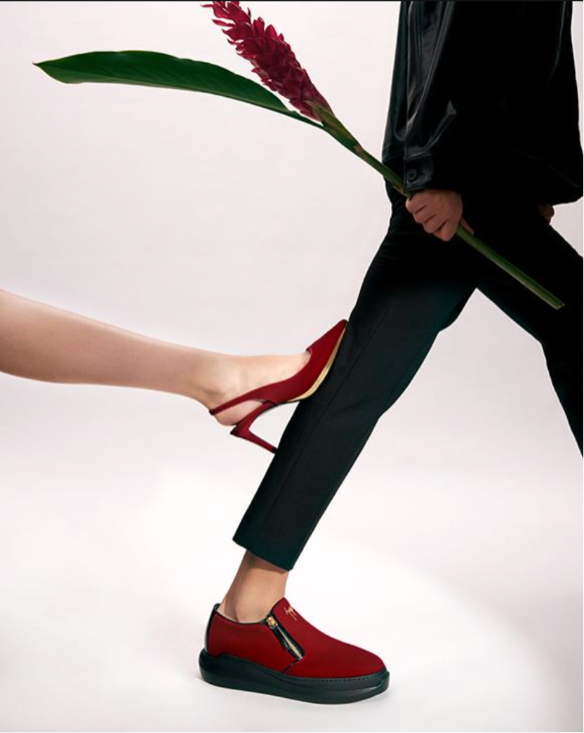 意大利奢华鞋履设计师品牌 Giuseppe Zanotti 倾情推出的 2023 中国七夕胶囊系列也以花卉为灵感,通过红色芍药与红姜花代表最热烈的爱情,以花香与甜柔书写一纸浪漫。