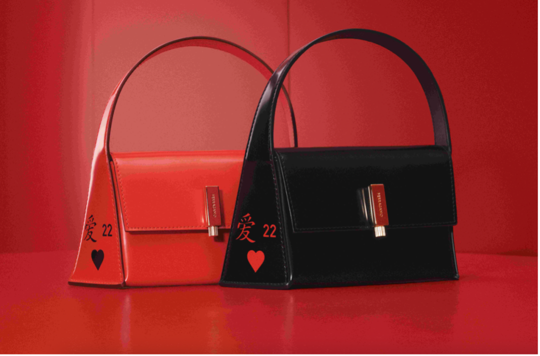 由于汉字中的“爱”,与数字“22”有着巧妙的相似发音。Ferragamo 创意总监 Maximilian Davis 留意到中文语境中对爱意的表达,与今年“七夕”情人节日期的巧合。创新地提炼数字“22”与汉字“爱”为设计元素,以中国传统麻将牌为灵感,将数字、汉字与饱满的红心组合,象征在恋爱中的情侣,浓情蜜语,好事成双。
