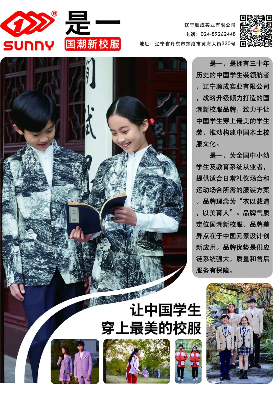 “是一”品牌是辽宁顺成实业有限公司战略升级倾力打造的国潮校服品牌,致力于让中国学生穿上最美学生装,推动构建中国本土校服文化。