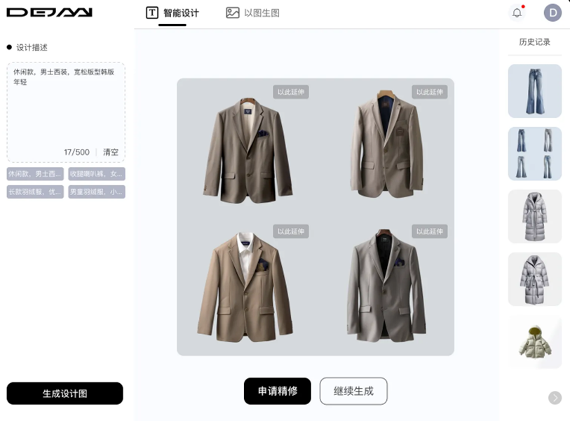 自研服装算法大模型,以AI智能服装设计为核心,协助企业进行服装设计流程的AI智能化升级,为企业降本增效,提升款式研发竞争力。