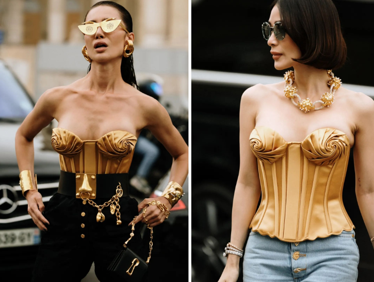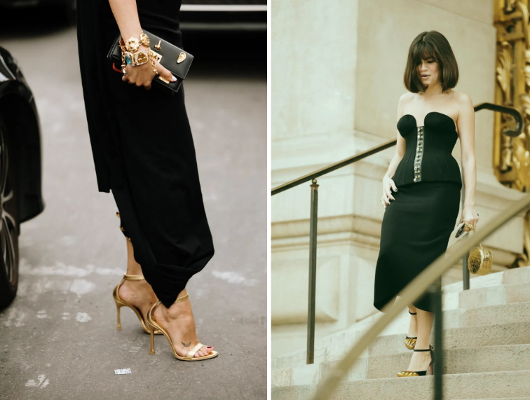 金色作为点缀色非常友好,穿一身金色也不错。夏日不妨来一条金色裙子,适度露肤。