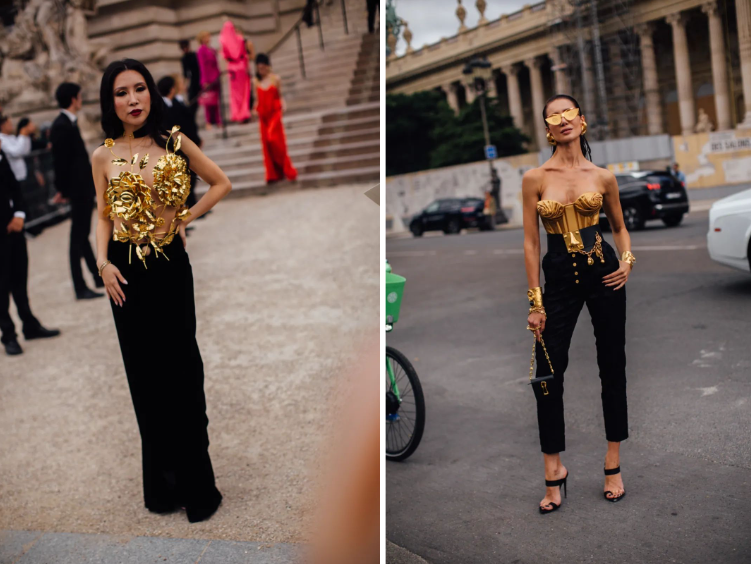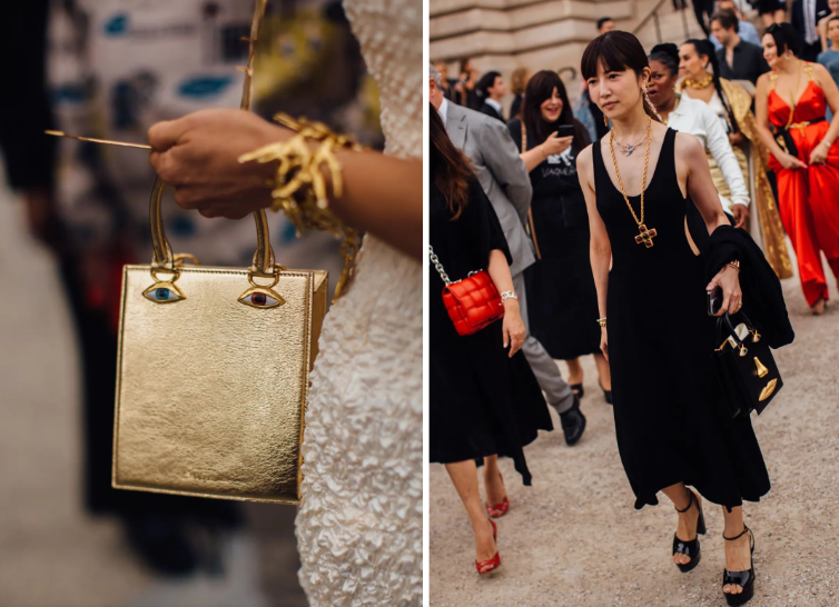 彩色搭配金色也很动人,但日常这样配色不多,秀场上的配色可以参考一二。