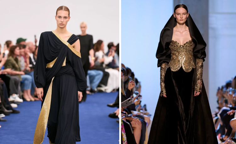 清爽的白色系可以添加金色系来加分,秀场上就有不少这样的设计。比如仙气飘飘的小白裙加入金色点缀,优雅又显高级。