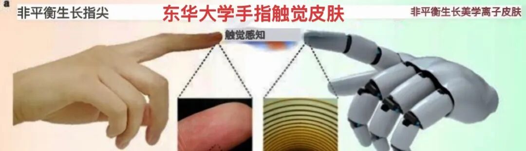 我国有许多企业和大学正在研究机器人灵巧手:思灵机器人推出了Dexterity Hand仿人型五指智能灵巧手,采用高度集成化设计,由4个模块化的手指和1个具有主动对掌功能的拇指组成,每个手指有一个独立自由度和两个耦合自由度,所有的驱动、传动、传感及电气模块均集成在手上,具有集成化、模块化、数字化以及实时控制等特点。每个手指可独立进行控制,完成灵活、精细的抓取操作,在功能上与人手相媲美,主要面向服务、康复理疗、危险环境作业、空间探索等应用场景;因时机器人推出的仿人五指灵巧手,单手具有6个自由度和12个运动关节,五指可灵活快速运动,结合力位混合控制算法,具有亚毫米级定位精度和数千克的负载能力,可以模拟人手实现精准的抓取操作,产品适用于人形机器人、协作机器人、医疗机器人、特种机器人及假肢等;哈尔滨工业大学(HIT)与德国航天航空中心(DLR)合作研发了机器人仿人灵巧手HIT/DLR Hand和HIT/DLR Hand II。其中,HIT/DLR Hand II有5个手指,每个手指有3个自由度,4个关节,所有的驱动、传动、传感及电气模块均集成在灵巧手手指和手掌中。它不仅可以安装在机器人手臂上,在复杂、危险的太空环境中完成精确操作,从而代替宇航员长时间在危险环境中完成维修、安装等工作,还可以集成于地面机器人,在核、生、化等危险环境中从事探测、取样、装配、 修理作业等;此外,北京航空航天大学、上海交通大学、天津大学、东南大学、东华大学等国内高校也在灵巧手指方面开展了研究,并取得相应成果,其中东华大学离子皮肤指尖,它能够实现类似于人类指尖皮肤的触觉感知,除了识别物体形状外,它还能够摸出物体表面不同的纹理和材质、还能检测大气变化!离子皮肤是一种超软的触觉传感器,能够帮助机器人实现类似于人类的触觉感知,见图十六。