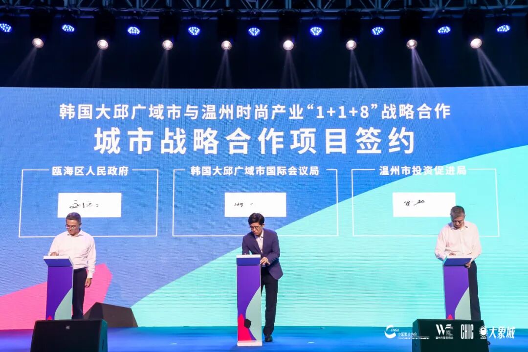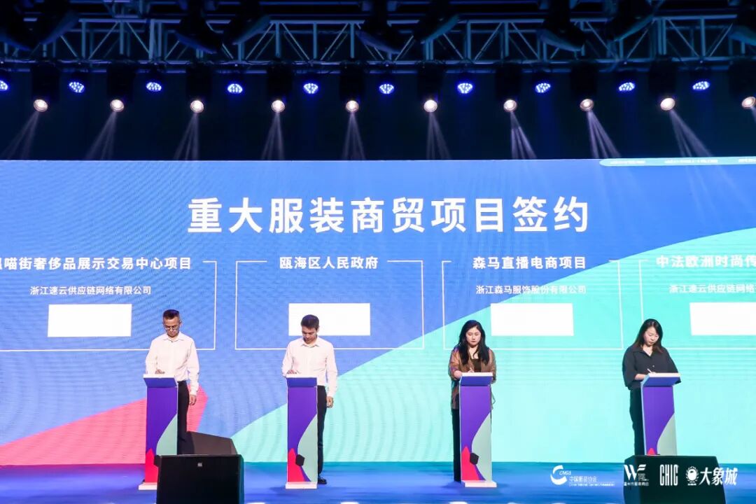 同时,“温州服装产业智库专家”授牌仪式、“温州服装城项目”系列签约仪式、“重大服装商贸项目”系列签约仪式、“时尚智造小镇重大项目”签约仪式、韩国大邱市与温州市服装产业“1+1+8”战略合作签约仪式,以及“中国服装定制产业基地”授牌仪式等在本次活动中举办。这些优质项目的落地,是温州服装产业一次质的飞跃,对于进一步拉长温州服装销售上下游产业链条,持续提升温州服装产业层级具有重要意义。