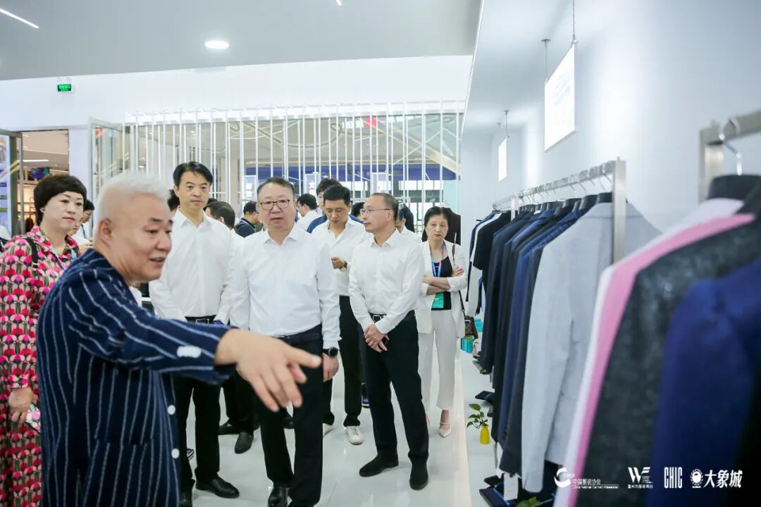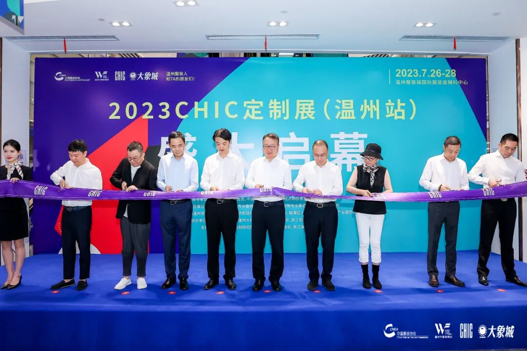 国际纺织制造商联合会主席、中国纺织工业联合会会长孙瑞哲,中国服装协会常务副会长、中国服装科创研究院院长杨金纯,温州市瓯海区人民政府副区长杜潘祚,温州市瓯海区商务局局长谢东,中国美院博士生导师、中国服装设计师协会副主席、国家重点人文社科东方设计学项目首席专家吴海燕,中国金顶奖设计师、曾凤飞服装设计有限公司设计总监曾凤飞,温州市服装商会决策顾问、乔顿服饰股份有限公司董事长沈应琴,温州市服装商会会长池慧杰、温州服装产业联盟主席、森象控股集团董事长陈龙秋等领导和嘉宾出席CHIC2023定制展(温州站)启幕仪式并走访了定制展现场。