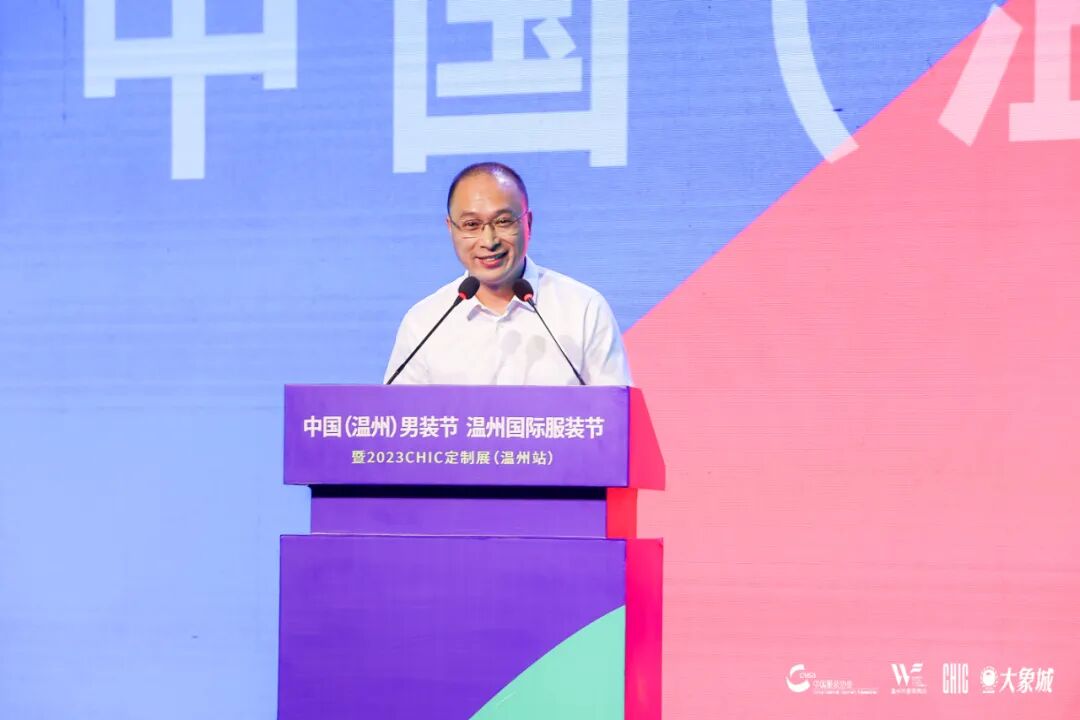 温州服装产业联盟主席、温州大象城董事长陈龙秋在致辞中表示:“十年来,温州大象城深耕鞋服行业,立足瓯海高铁新城,为温州服装产业构建了一个时尚发展平台,未来仍将以发展定制产业为己任,辐射并赋能全国服装行业的高质量发展。”温州市服装商会会长池慧杰则对温州服装产业现状及未来趋势进行了介绍。他认为,这次“办在家门口”的活动将进一步扩大温州服装品牌影响力。中国服装协会常务副会长、中国服装科创研究院院长杨金纯肯定了本次活动的意义和价值,他表示,在国内经济加快复苏的当下,CHIC2023定制展(温州站)是一个完美的开始,希望在各大行业协会和业内同仁的共同努力下,借助CHIC的国字号展会IP影响力和流量,能带领温州定制走出特色,重振雄风。