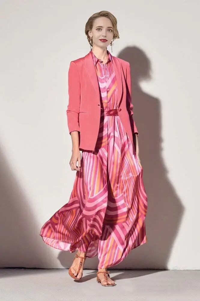 杭州风韵服饰有限公司,是一家集研发、生产、销售为一体的高端时尚女装公司。公司坐落于丝绸之都-杭州,旗下品牌“简衣丝蒙”,致力于打造中高端真丝产品。公司专注于真丝产品八年,每年只专心做一件事,专业研发和生产真丝衬衫、连衣裙、套装、半裙、裤子、西装等产品,主要采用的真丝面料有:双绉、乔其、顺纡、提花、重绉、斜纹、双乔、电力纺等。