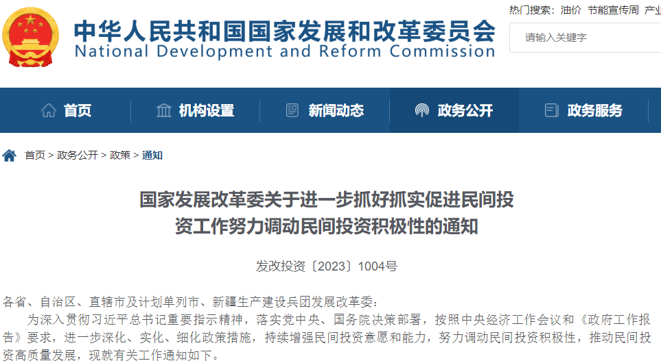 日前,国家发展改革委发布《关于进一步抓好抓实促进民间投资工作努力调动民间投资积极性的通知》,提出将在交通、水利、清洁能源、新型基础设施、先进制造业、现代设施农业等领域中,选择一批市场空间大、发展潜力强、符合国家重大战略和产业政策要求、有利于推动高质量发展的细分行业,鼓励民间资本积极参与。