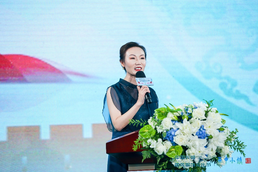 ▲华中集团产业总裁刘春燕代表企业致辞:长城是世界语境的中国符号,是中华文明的重要象征。泱泱华夏、礼仪之邦,中华服饰是世界文明的瑰宝,承载着中华民族的精神追求,蕴含着“内修容德,外服天下”的文化自信。华中集团携手中国服装协会共同举办首届中国长城国风服饰文化节,以长城为主题,以山谷为背景,以建筑为载体,以服饰为内容,旨在以衣载道,以文化人;传承华夏之美德,中华之文明;让服章之美,礼仪之大,继续光耀中华,与世界同享。