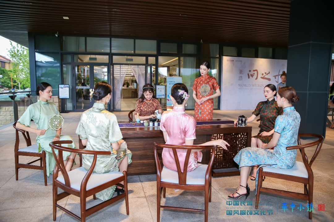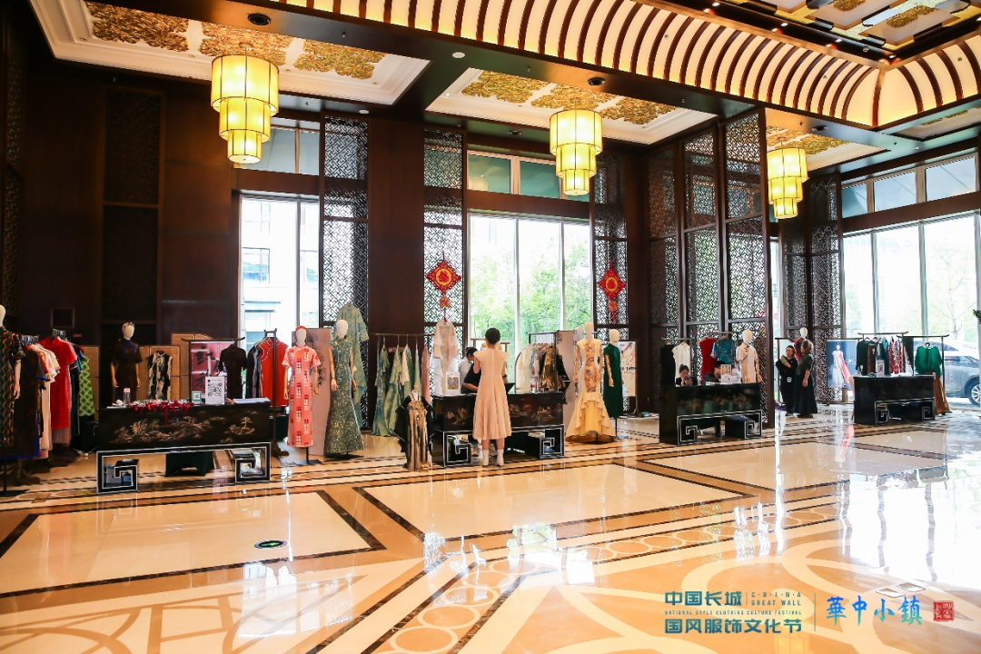 文化节上,在华中小镇鼎泰宫还举办了一场匠心独具的国风静态展,IS.CHAO、花木深、红馆旗袍等品牌,展示新款应季服装,国风元素特征显著,以亮眼的设计、严谨的工艺、展示中国传统文化元素与当代时尚的结合,吸引了众多观众驻足询问采购。