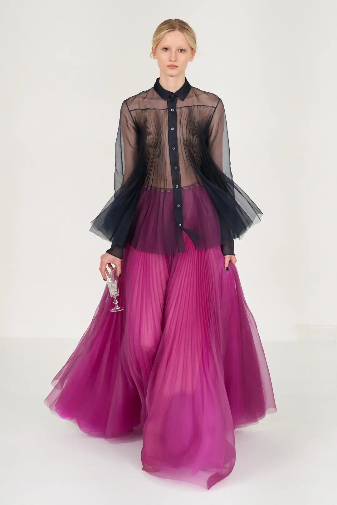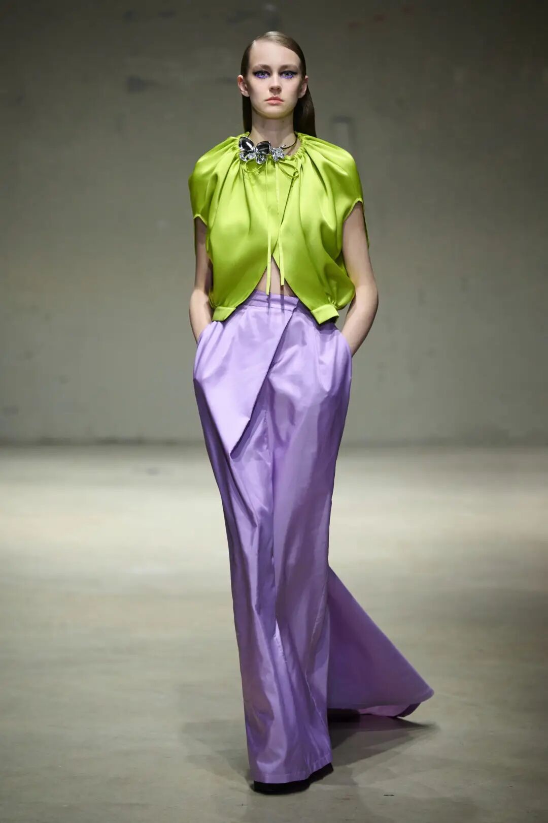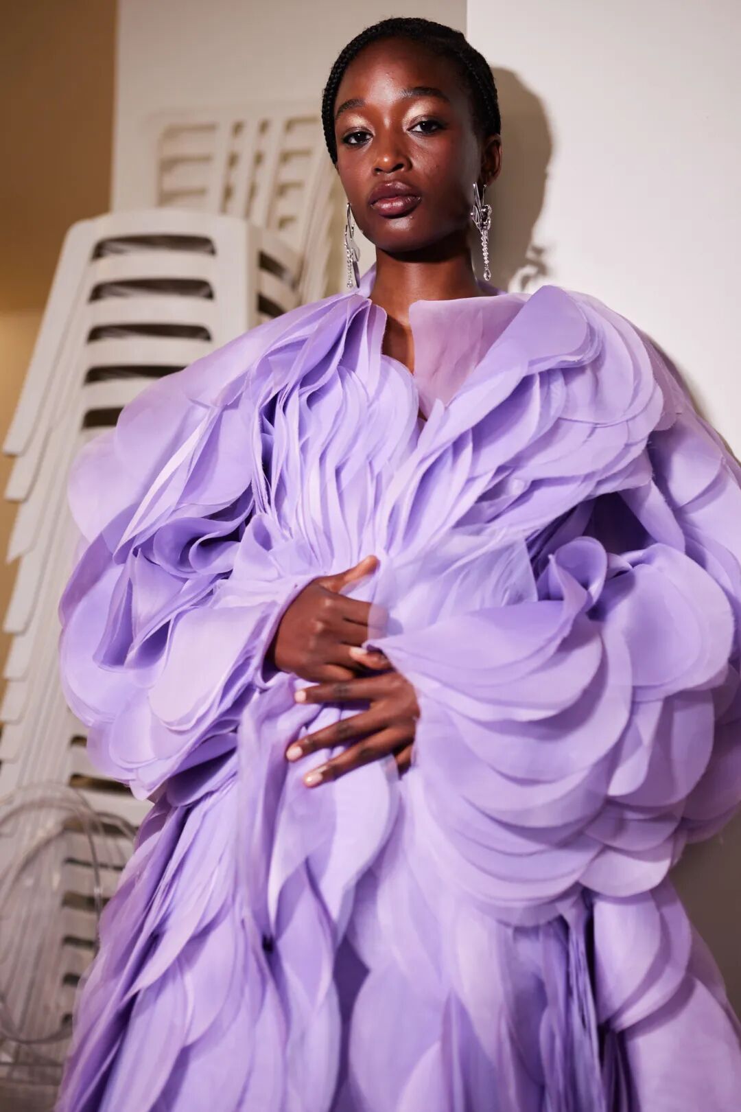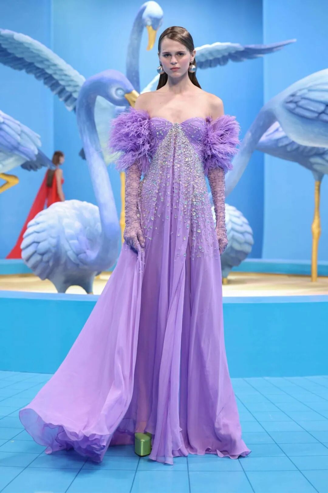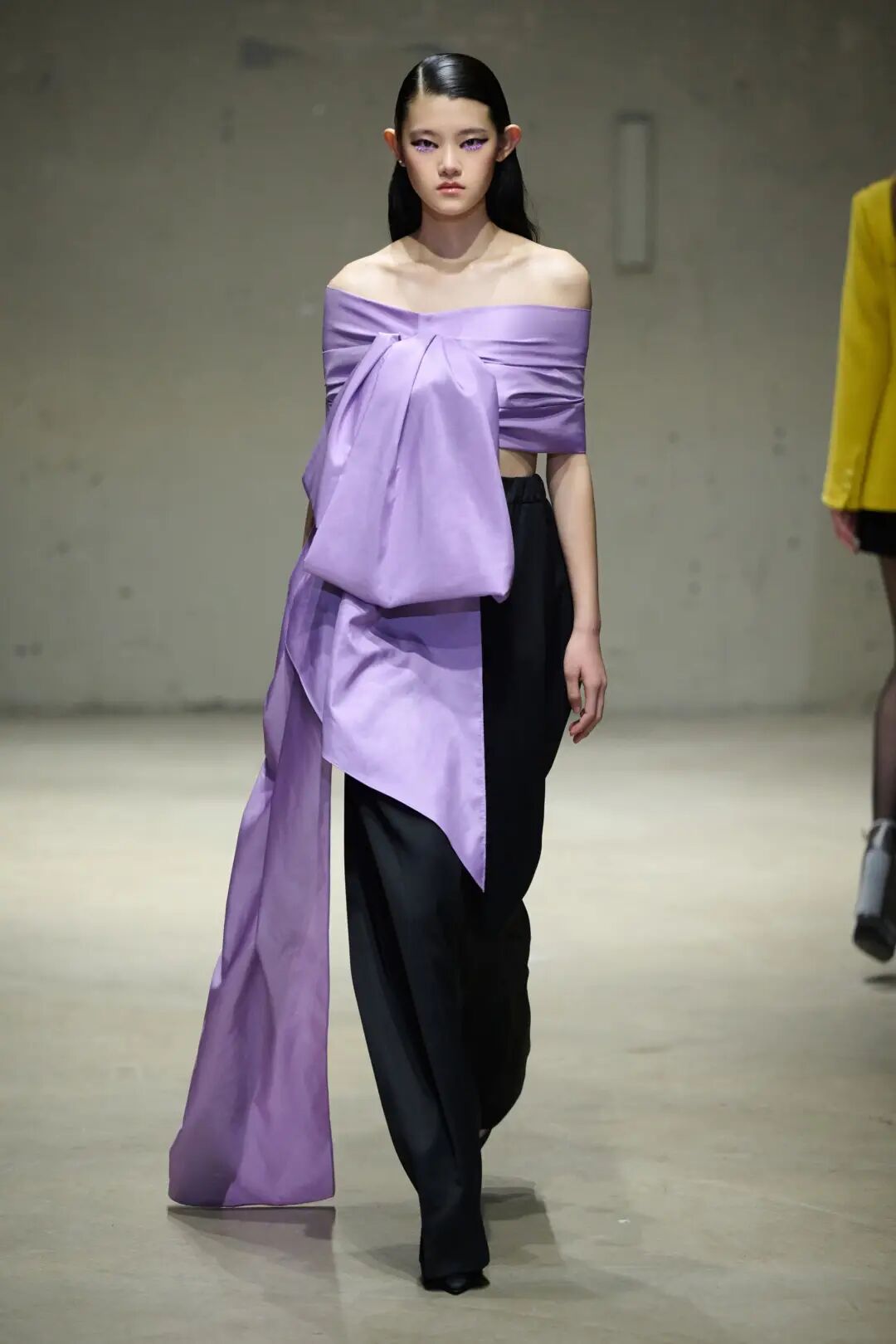 在亚洲,紫色历来是神秘的代名词,通常与帝王、圣人、神仙密切相关,诗人也常常在文学作品中使用该色彩来描绘自然美景或皇家居所。如今,紫色的文化内涵与现代价值观相融合,这一点在时尚领域尤为显著。融入传统象征元素,并使用包括紫色在内的粉蜡色,旨在连接过去、现在和未来。