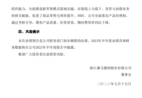 点击蓝字关注我们中国服装协会副会长单位——浙江森马服饰股份有限公司7月15日发布...