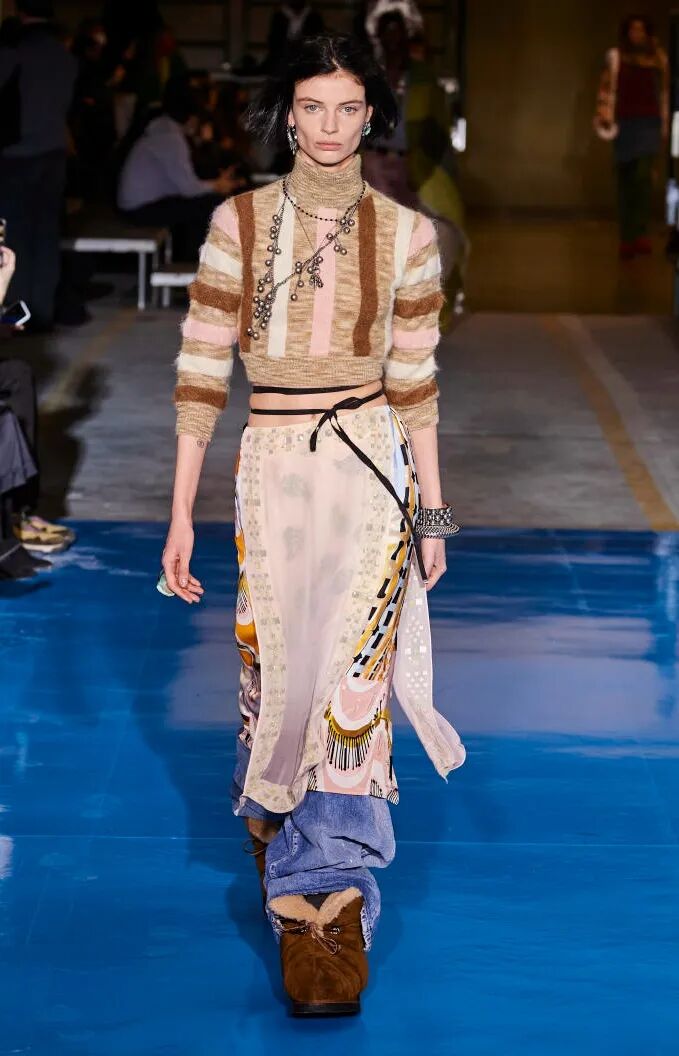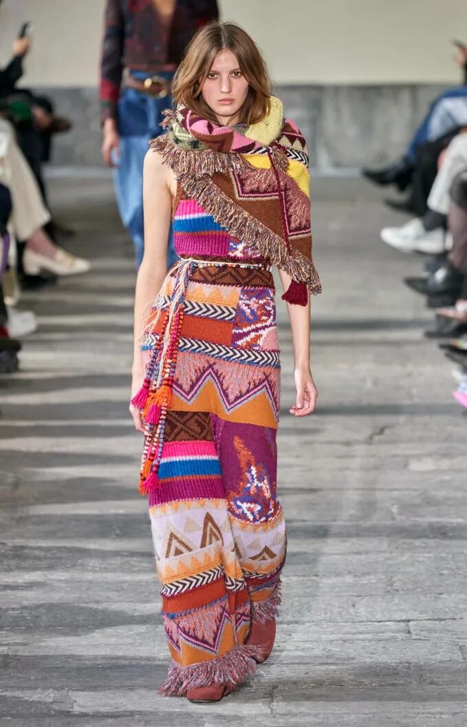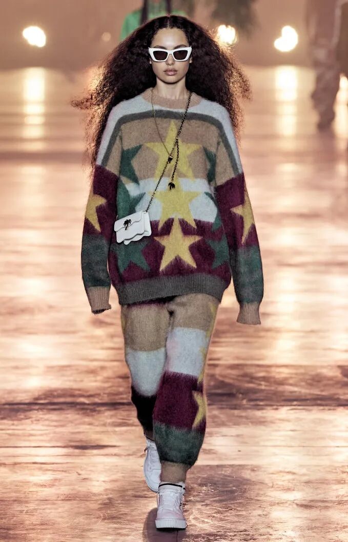 秀场上少不了各式各样的花花衣服,这印花图案千变万化,各式各样的都有。采用艺术化的表现手法,继续迎合新派幻视主题,让设计突破年龄和性别的限制。融合自然风格与数字滤镜的图案越来越流行。在此趋势下,几何形元素日益席卷市场。由于数字图像涌现,再加上AI生成图像不断兴起,消费者越来越习惯于这种AI超现实美学。基础黑白配和新派视幻图案赋予了几何形全新的视觉吸引力,是必不可少的个性元素。为了弱化黑白配色的对比感,采用深海军蓝搭配白色或中性色,提升款式的实穿性。不同尺寸的错裂条纹图案为夏季条纹增添新意,让单品一年四季皆可穿。也可以用手绘风文字和素描线条为单品增加个性。拼图式重复图案更显俏皮,同时兼顾了熟悉形状。在2022年,棋盘格和常规的重复图案演化为#铺镶几何。来自世界各地的世纪中期图案、万花筒碎形和模板印花图案皆适用,为这些印花增添独特风格。将花押字融入到重复图案中。标准工装、实用和中性色如靛蓝、卡其色和海带绿是最好驾驭的切入点,尤其是在同色系设计中。三角形和菱形重复图案令人眼花缭乱,以更简洁的设计、散布的重复图案和同色系搭配扩大吸引力。精巧和大尺寸的几何形赋予图案复古感。棋盘格和多色菱形花纹等流行趋势将继续风靡,带来具有全新学院风的现代学院风造型。紧跟本季考究基调,用闪亮超细纱线打造时尚修身款式。从复古铺镶几何到方块形状,风格百搭的几何形继续推动印花和图案发展。采用像素化方块,为格纹注入现代新意。采用小尺寸的重复布局,打造几何形花押字,提花和嵌花工艺能够增加纹理,而拼接设计最适合大面积使用。用亮色、拼接、补丁等元素。尝试费尔岛图案等复古设计,以及夹色纱捻纱、条纹、醒目几何图案。不妨把握机会,制作新捻纱和层次拼接,打造日装和晚装。70年代风潮卷土重来,复古风格与配色明亮的现代更新相互平衡。色块拼接与几何图案是关键,可以运用小几何图形或薄软绸风格的印花。复古风重塑几何形印花,成为T台和时装周街头的焦点,用于礼服和精致考究的休闲款式。这些百搭花纹适用于许多主打单品,包括包袋和配饰,可以打造全身同花纹的造型。精彩推荐: