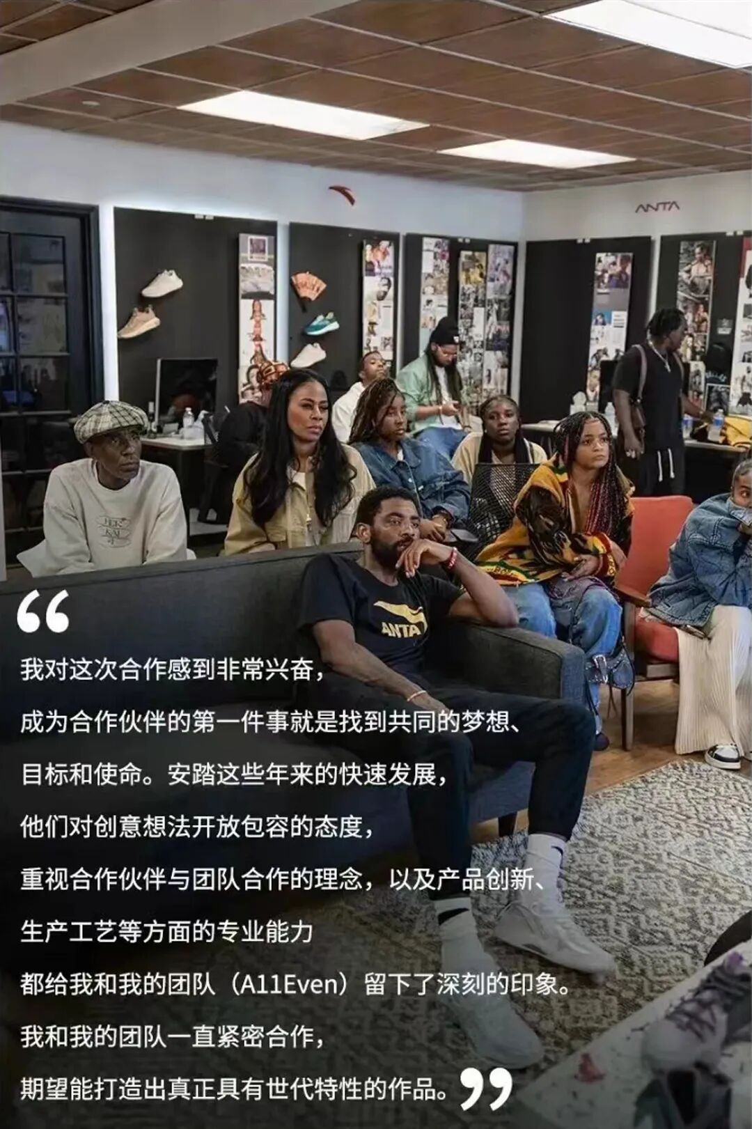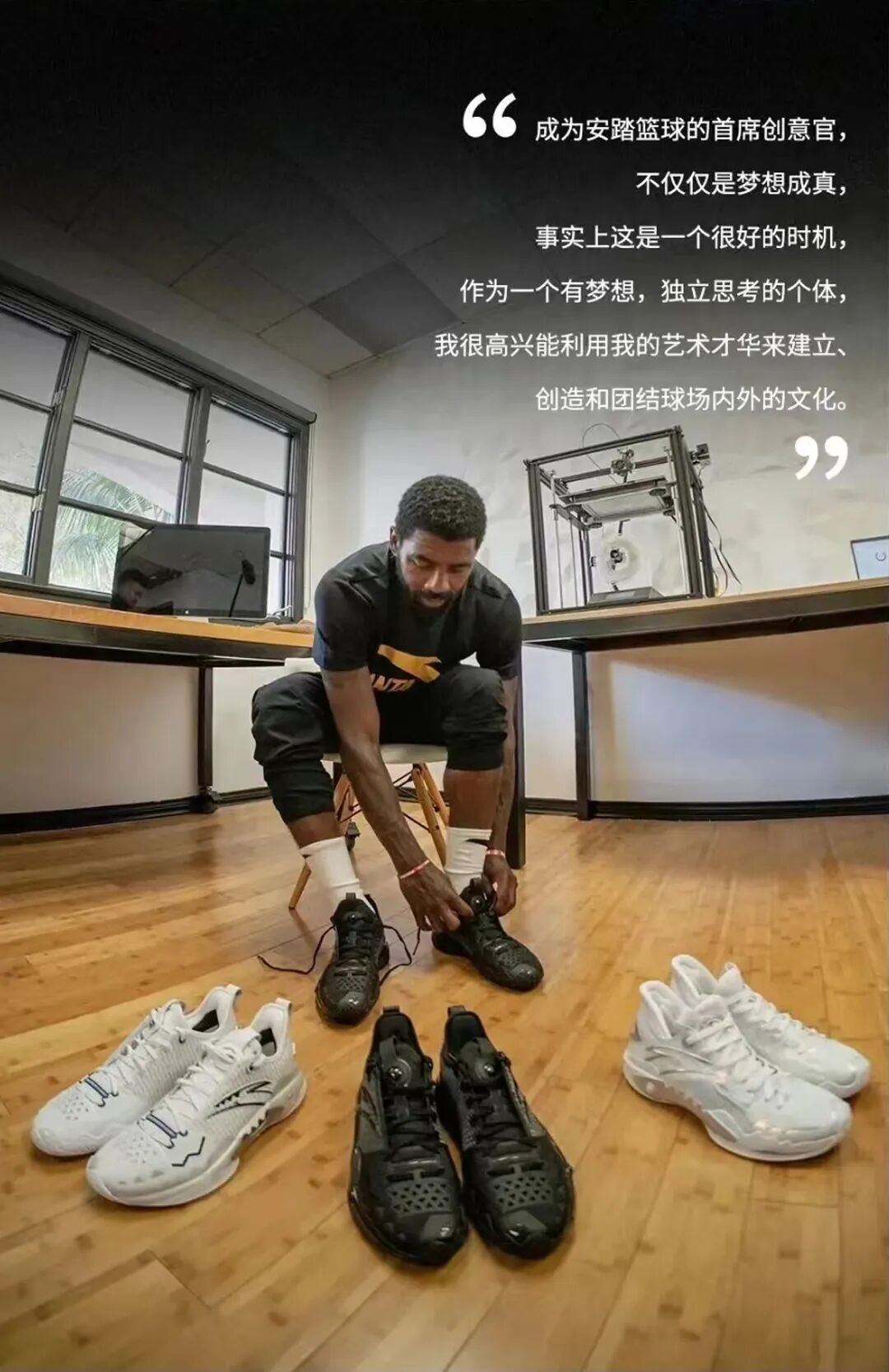 本次安踏与欧文将开启全新的商业合作。作为安踏篮球代言人,欧文不仅将以首席创意官的身份参与其全新个人产品线的设计,还将亲自邀请篮球运动员 自主品牌、泛潮流文化的意见领袖艺术家、音乐家、环保及人道主义先锋、设计师一起合作,围绕欧文个人产品线推出更多支线产品。