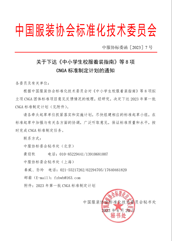 通知公告|关于下达《中小学生校服着装指南》等8项CNGA标准制定计划的通知
