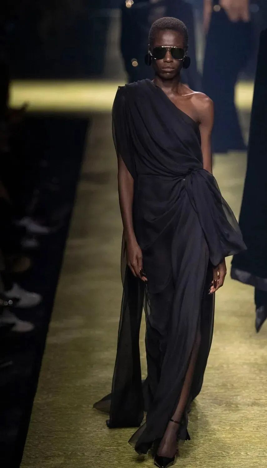 Chanel、Anthony Vaccarello的Saint Laurent或Coperni和Courrèges(仅举几例)都符合这种 80 年代的审美观。时装秀上展示了单肩连衣裙,其轮廓线条大胆,比例巧妙平衡,糖果色或中性色,盛大晚会或吊带裙风格, 优雅的垂坠或镂空结构,每位造型师都根据自己的风格重新审视这一趋势。