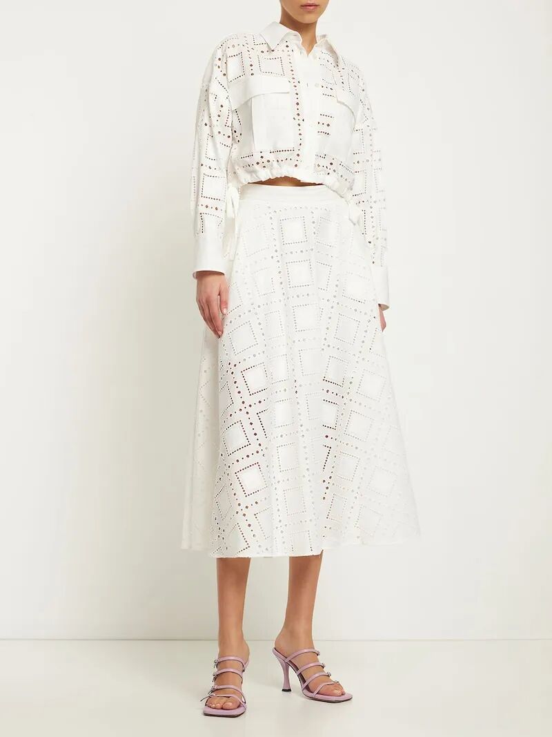 泰勒·斯威夫特身穿浪漫的白色棉质两件套长裙