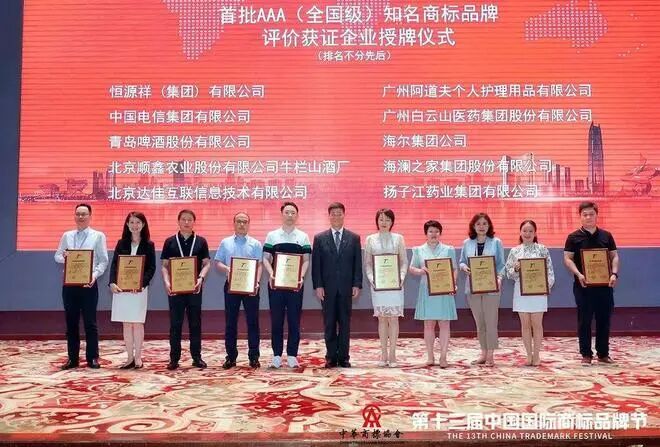 6月16日,第十三届中国国际商标品牌节在广东省东莞市开幕,欢迎会上公布了10个品牌入选首批AAA级(全国级)知名商标品牌,并进行授牌仪式。中国服装协会副会长单位——海澜集团有限公司旗下品牌海澜之家入选。这是全国性的品牌盛会,海澜之家成为首批入选的品牌之一,是行业和大众对品牌价值的高度认可。首批AAA级(全国级)知名商标品牌名单依据《知名商标品牌评价规范》 (T/CNTA002-2002),经现场评价、专家评审,由中华商标协会审核批准、且公示无异议后产生。