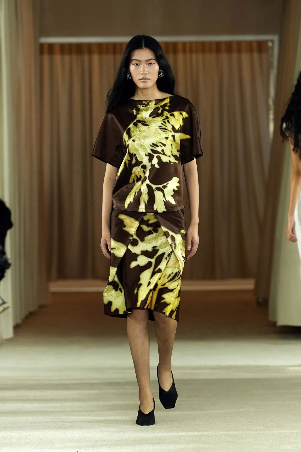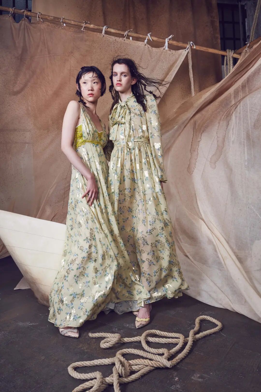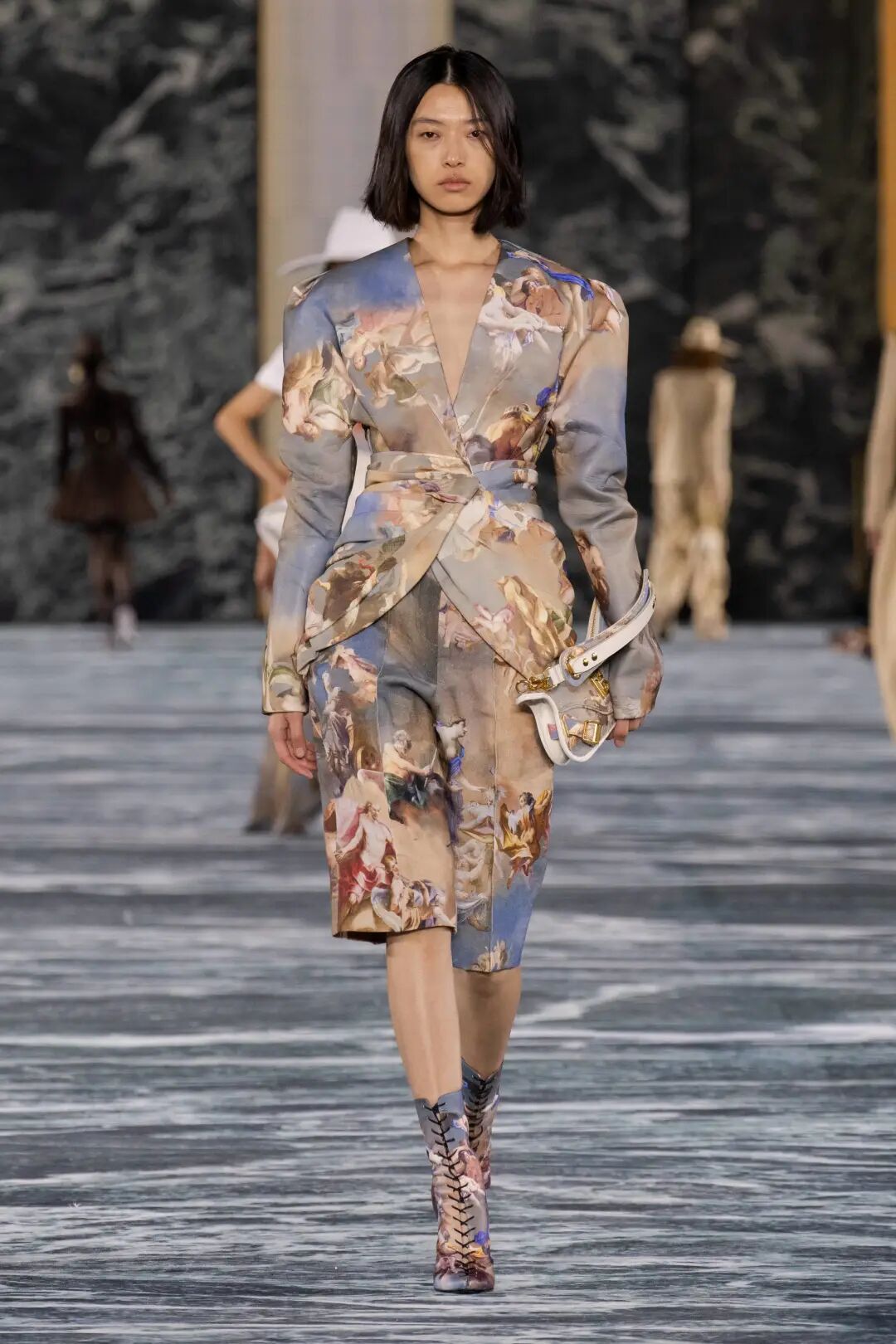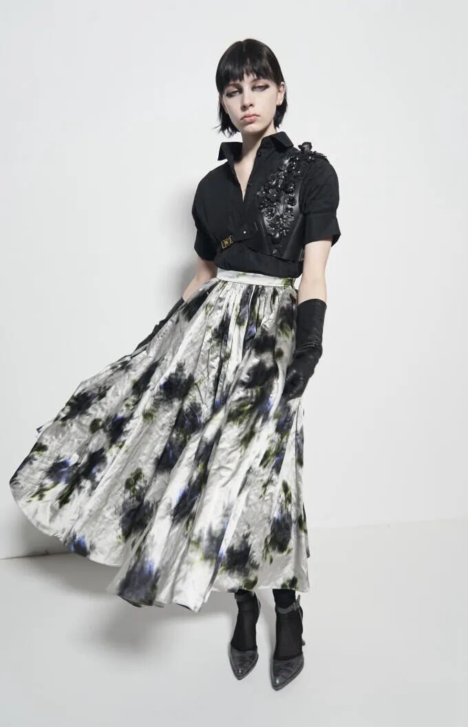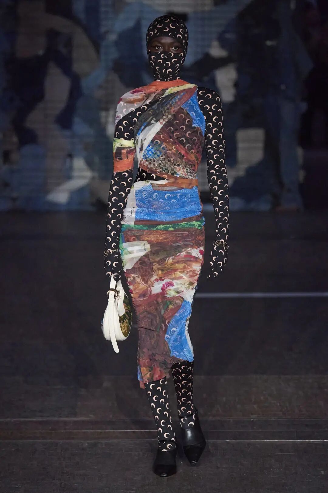 雾蒙蒙的褪色效果反映了多重危机时代的暗黑基调。设计师纷纷借助AI创造力以打造超现实主义风格。虚幻的褪色图案和模糊印花极具跨季魅力,呼应着无尽幻想预测主题。