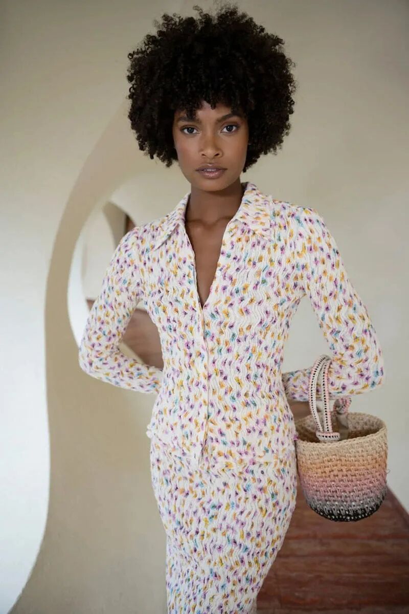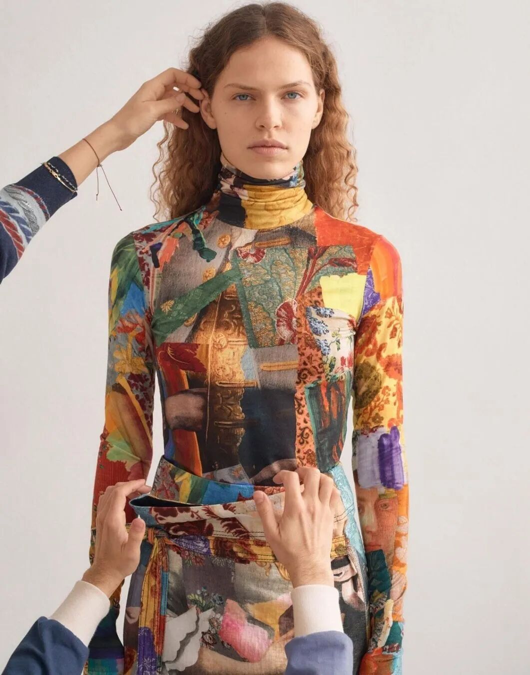 采用模糊失真的暗底花朵。使用花影交错的失焦图案,搭配错视效果的面料和肌理印花。运用数码印花技术,实现照片失真效果,同时减少染料使用及化学品浪费。参考复古二手风格和再利用设计,打造拼布图案和混合媒介印花。采用拼布设计和修复工艺,呼应极具艺术性的升级手工艺主题。随着过度消费问题备受关注,设计的重点在于利用时尚档案和滞销面料,并借此启发织锦挂毯设计和印花创意。从手工艺风趋势来看,对个性化的渴望正推动手绘及手工设计日益流行。打造拼布设计时,使用前几季的印花布,减少面料及丝网浪费。成衣直喷手绘图案具有个性化效果。注重叙事和场景,使单品呈现织锦挂毯般的美感。品牌纷纷开始探索文艺复兴时期的艺术和室内装饰,区域性传统是重点。织锦和家装花朵设计体现了这一外观,同时节俭文化和改造潮流推动了文艺复兴时期艺术和巴洛克风格的复兴。设计师们目前大量参考欧洲艺术,但该趋势将放眼全球,深入到不同地区。目前,设计师不断挖掘西方文艺复兴时期,从过去的印花和图案中汲取灵感。将大获成功的家装花朵融入全球各地的协作手工艺作品,如应用数字渲染创作的织锦印花。对原始内饰面料进行再利用,打造持久耐用的结实单品。裁剪缝制的重塑构成独特图案。数字印花减少了水耗和油墨用量,为这一华丽主题创造出一系列色彩。精彩推荐: