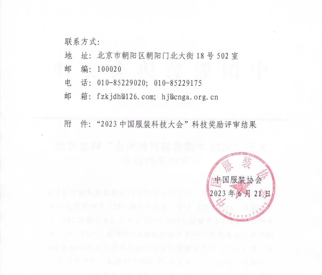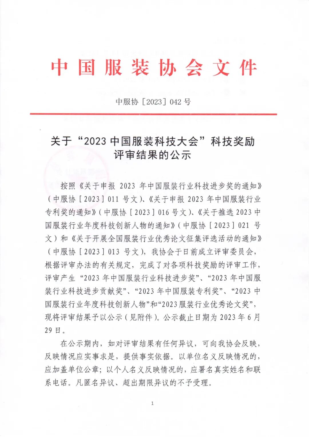 通知公告|关于“2023中国服装科技大会”科技奖励评审结果的公示