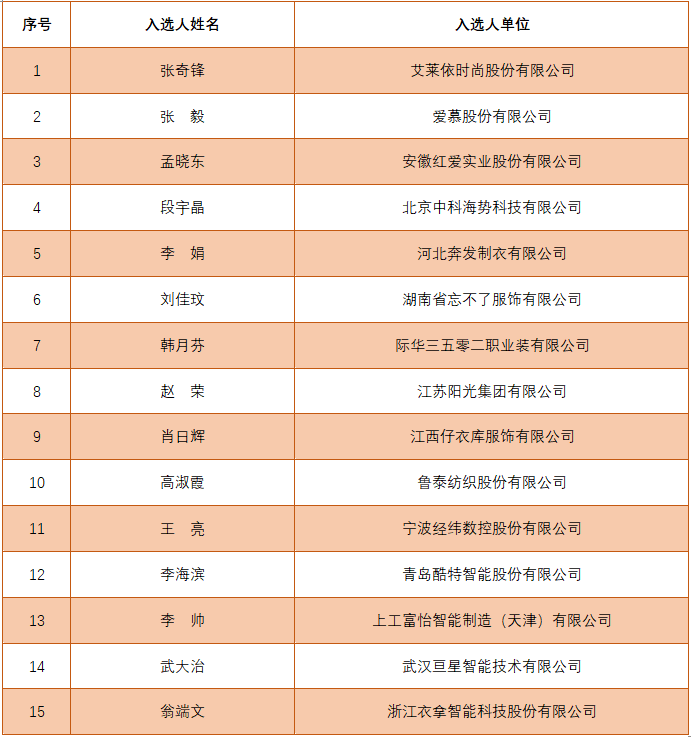 四、2023中国服装行业年度科技创新人物评审结果(排名不分先后)