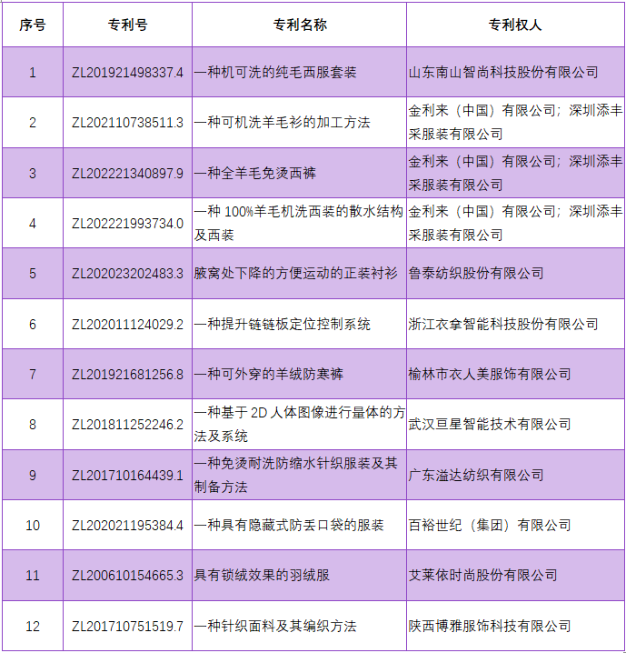 3、2023年中国服装专利优秀奖(排名不分先后)
