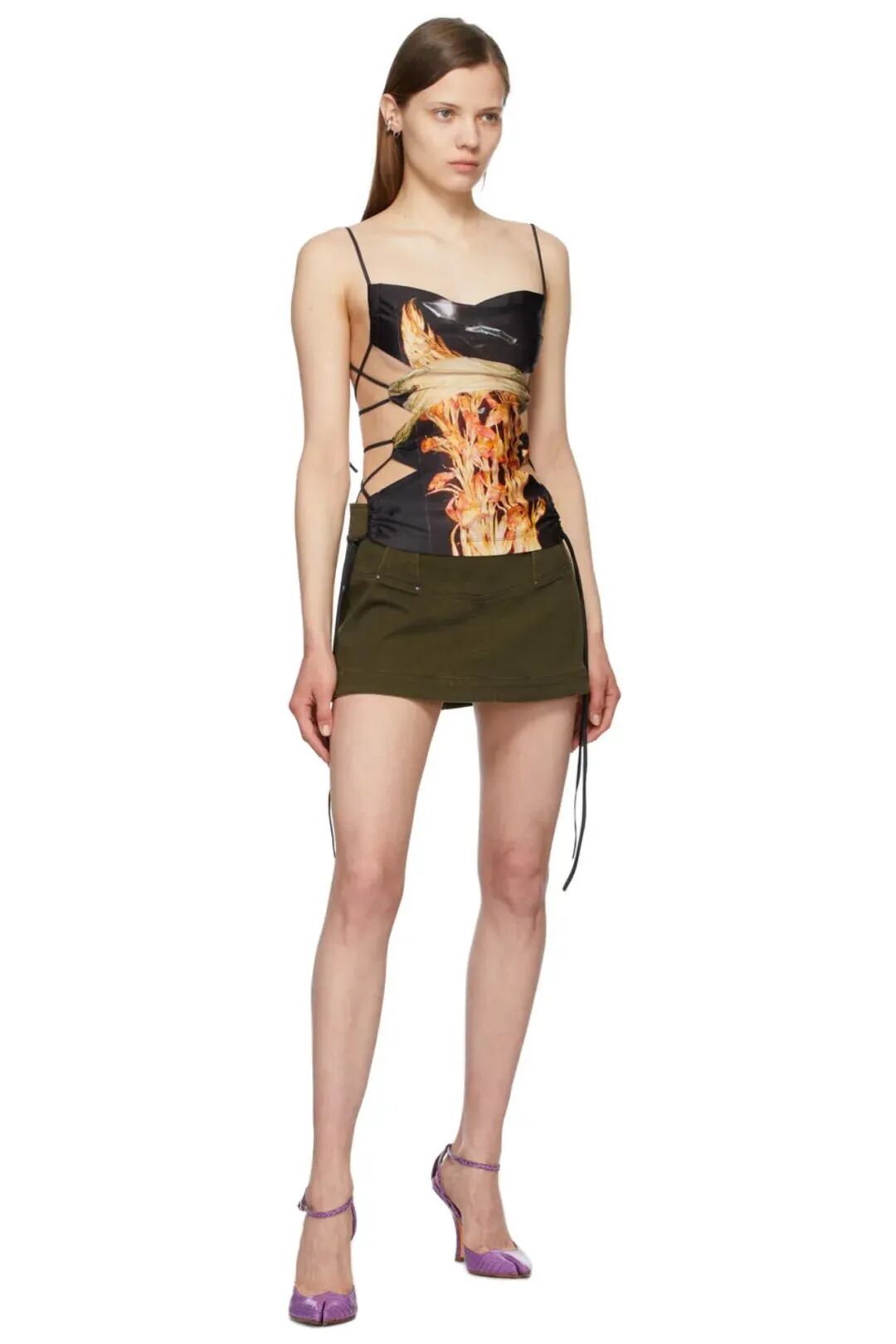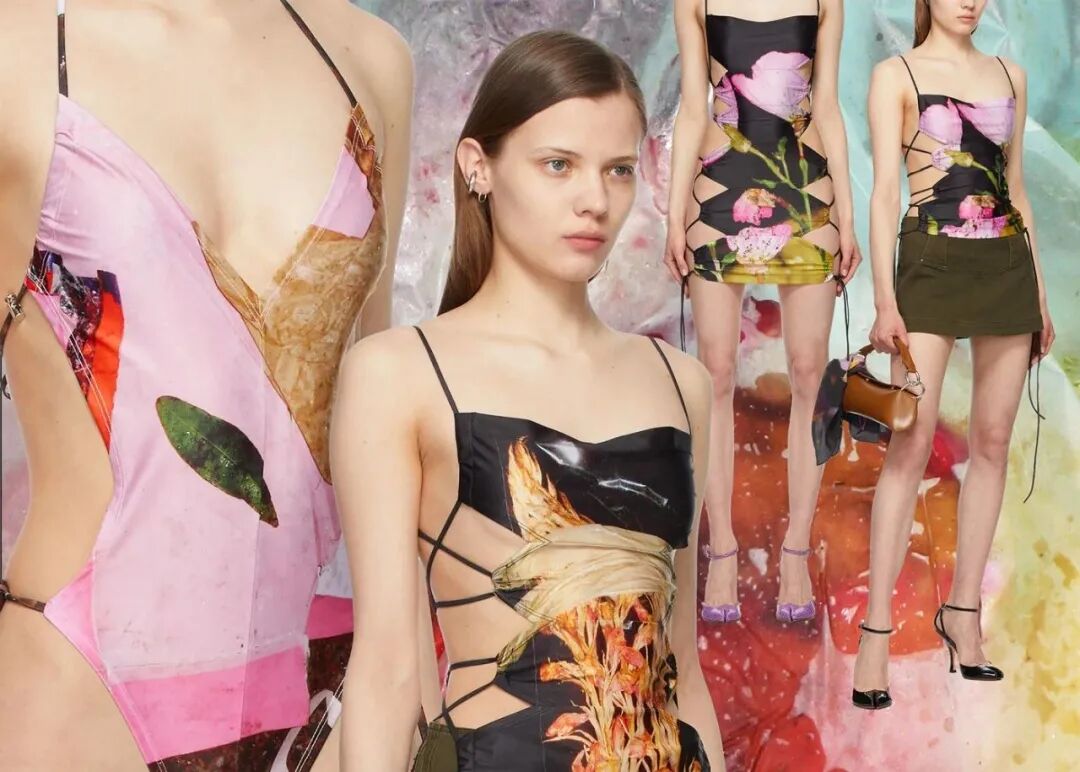 Charlotte Knowles 2017年从中央圣马丁毕业以来一路状态绝佳,每一季都用热辣到近乎出格的设计掀起波澜。她的设计灵感经常来自于内衣,面料薄透贴身,印花绚烂迷幻,剪裁却又有90年代的印记。