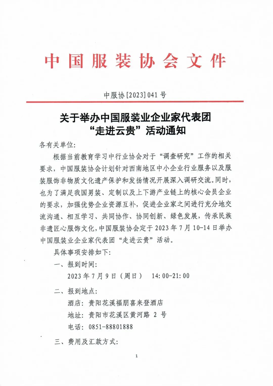 关于举办中国服装业企业家代表团“走进云贵”活动通知