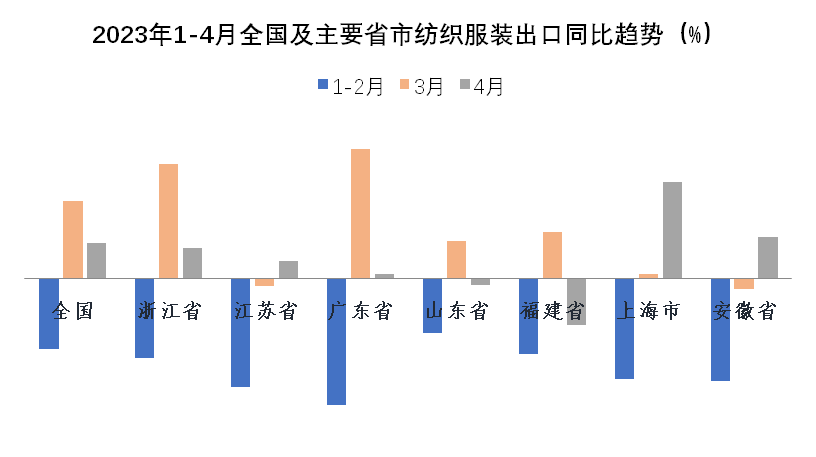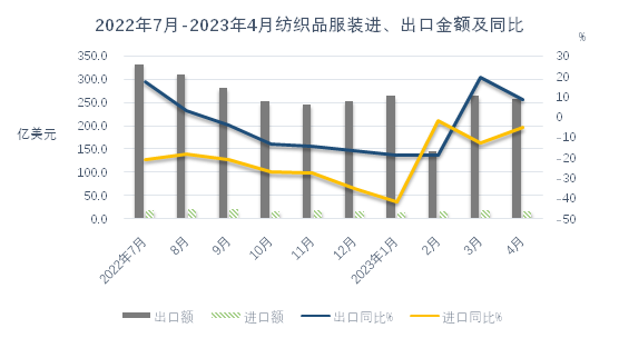 2023年1-4月纺织品服装贸易呈现如下特点: