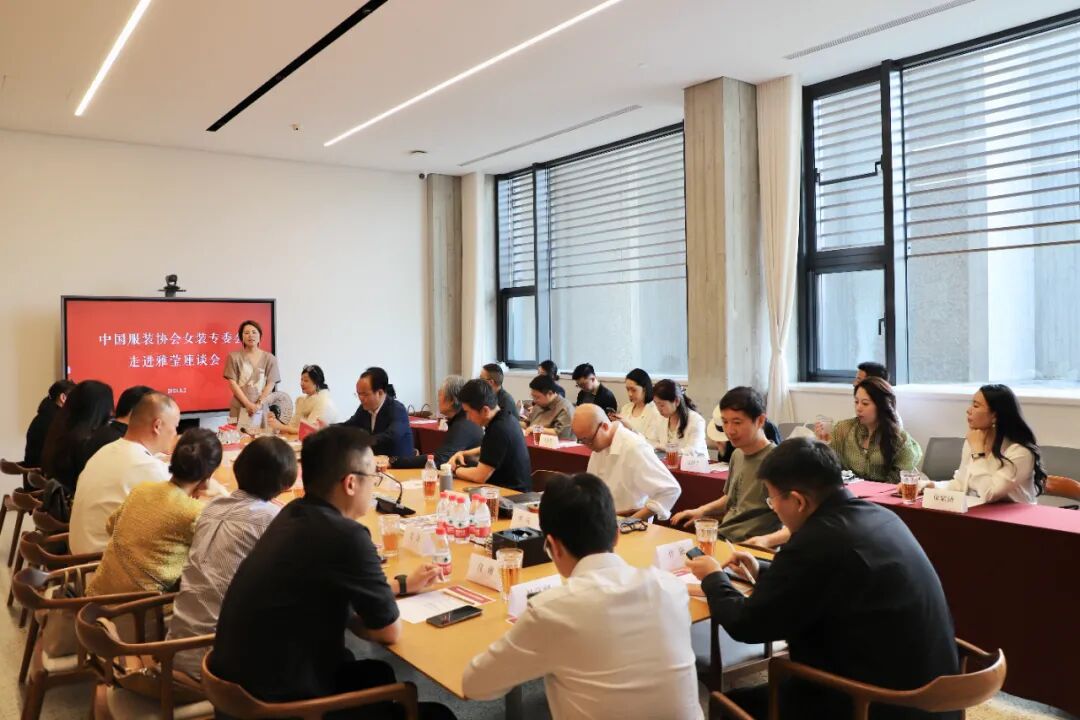 6月2日,中国服装协会女装专委会活动走进雅莹时尚艺术中心。中国服装协会专职副会长周一奇,中国服装协会副会长、中国服装协会女装专委会主任委员、歌力思集团董事长夏国新,中国服装协会副会长、例外时尚创始人毛继鸿,GOELIA歌莉娅品牌创始人胡啟明,朗姿股份总裁申今花,朗姿股份服装板块总裁常静,深圳东方逸尚服饰有限公司董事长罗峥,云衣控股集团总经理柳成,江南布衣集团副总裁倪国昌,玛丝菲尔时尚集团可持续发展中心总经理孙强,集团战略总监杨富纲,云创设计(深圳)集团有限公司CEO王远,歌力思集团副总经理付刚,卓尚集团董事长助理徐紫涵等20多位女装企业负责人及高管出席活动,同时中国服装协会展览部副主任刘岩,法国who's next 展会时尚总监 Sylvie Pourrat,宝鼎设计设计总监王飞作为座谈会分享嘉宾参与活动,中国服装协会女装专委会秘书长杨光主持座谈会。